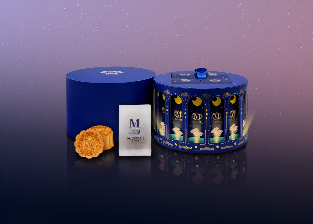 Lady M 甜品一向深受香港人喜愛,今年由 Lady M 美國總公司設計的「追月映畫中秋禮盒」以生動影畫和聲控功能,成為時尚之選。他們首度與米芝蓮星級餐廳合作,禮盒中盛載由都爹利會館精心製作的奶黃月餅,帶來視覺及味覺上的雙重享受。