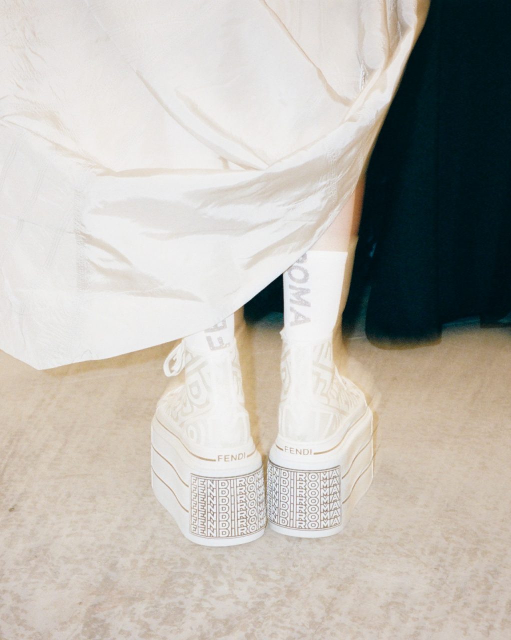 在時裝展結尾,Fendi 的現任代言人 Linda Evangel 身穿 Tiffany Blue 歌劇長袍、臂彎夾著一個銀色的 Baguette 現身, 與 Kim Jones、Silvia Venturini Fendi、Delfina Delettrez 及 Marc Jacobs 一同謝幕。早前登上英國《VOGUE》九月號封面,睽違天橋 15 年的 Linda 回歸,不但勾起大家對超模年代的回憶,也成功為這個意義重大的時裝派對劃上完美句號——全場觀眾起立鼓掌,如此興高采烈的畫面多久沒有在時尚界發生過?這一晚之後,Baguette 的地位肯定更接近的本義、像「法棍麵包」 同樣 timeless 了。