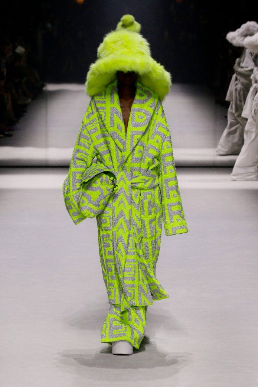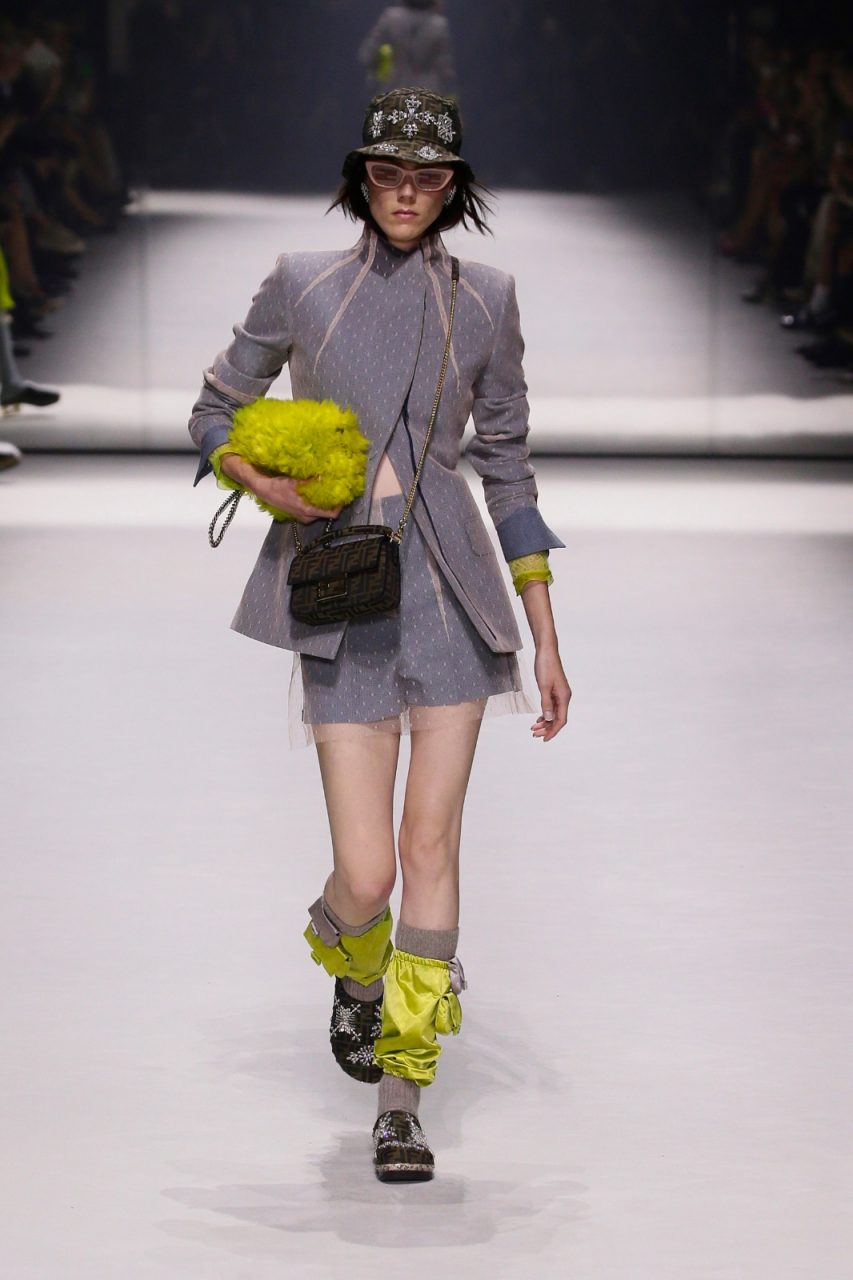 貫徹「大蘋果」的都會風格,Marc Jacobs 將另一個時代的華麗造型與現今的低調隨意對比。降落傘布半截長裙、背面脹起的破爛牛仔外套、玻璃紙歌劇斗篷及螢光色循環再造皮草披巾和帽子,令休閒服飾添上正裝氣派,反映紐約市五光十色。紐約街頭可見的玻璃門和地盤工人的安全背心也成為設計靈感,閃石、 銀色和螢光黃色隨處可見。浮誇、加厚、特大的剪裁,熟悉 Marc Jacbos 的朋友不會不認得,Baguette 化成讓人可以雙手插上的腰間口袋,令 Fendi 女郎變得更瀟灑。至於眾多超迷你版本的 Baguette,令人恨不得統統帶回家。