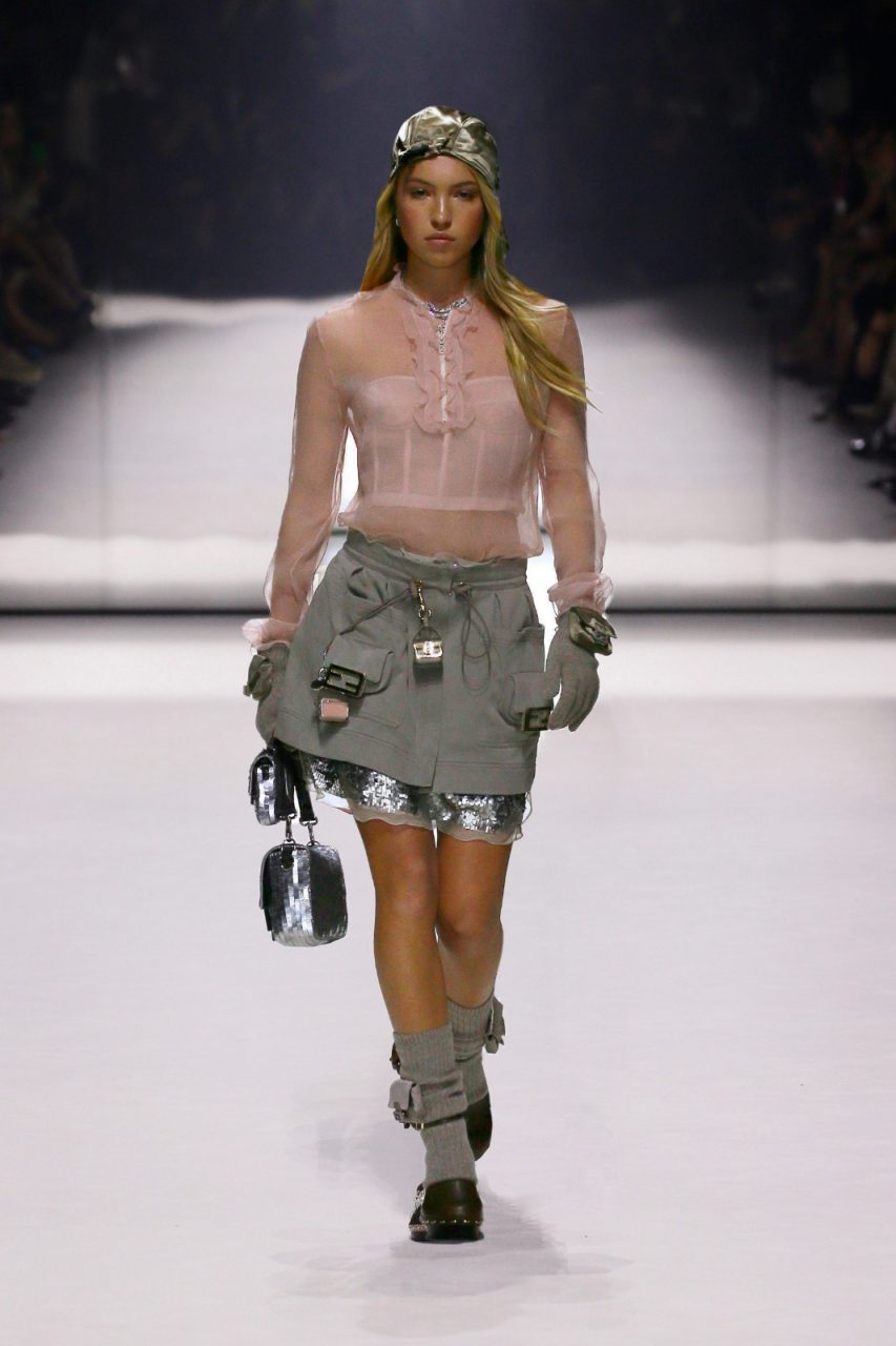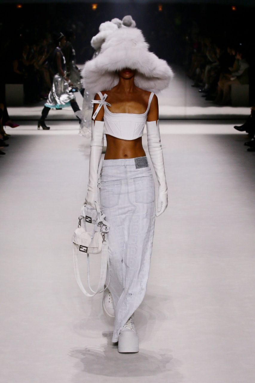 「我不想為週年就此設計一個傳統『系列』,而是要舉行紀念一個時代的慶典,為 Baguette 成名的時刻誌慶。」Fendi 女裝藝術總監 Kim Jones 介紹這個從一款手袋發展而來,層次豐富的新作:「我會說那個時代洋溢華麗俏皮的自由氣息,兩者皆是 Baguette 的特質。」Kim Jones 口中「華麗俏皮的自由氣息」, 亦是 Y2K(當下最重要的時裝關鍵詞)的一部份。回 1997 年春夏系列,即 Baguette 首度推出的一季,活力十足的氣氛撲面而來,但在今回2023度假系列中,你不會看到搬字過紙的舊作翻炒,而是一份同樣欣欣向榮的感覺。