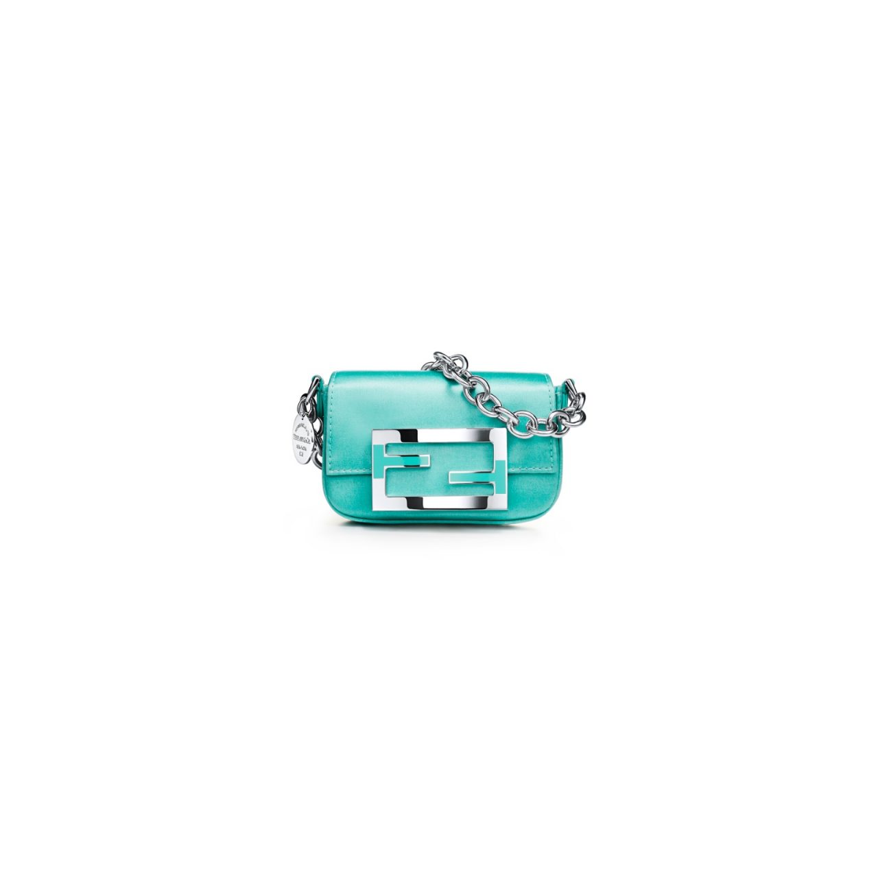 數描繪紐約的時尚電影,不可不提的必然是柯德莉夏萍主演的《珠光寶氣》(Breakfast at Tiffany’s)。恰巧兩大品牌現時都歸屬 LVMH 旗下,近水樓台的 Kim Jones 及 Fendi 首飾藝術總監 Delfina Delettrez 不忘拉攏 Tiffany & Co. 合作。這個著名紐約珠寶品牌重新演繹 Baguette,以純銀、琺瑯、鱷魚皮、 白金和鑽石展現手袋形態的首飾,別緻矜貴。「T」和「F」交織成白金標誌袋扣並鑲嵌鑽石,亮面鱷魚皮染上 Tiffany Blue, 教人無法抗拒!最驚為天人的設計,必數完全以點彩純銀製成的 Baguette,由 Tiffany 工匠人手巧製四個多月,鐫刻意大利國花百合和紐約州州花玫瑰圖案,屬 Fendi 首次與意大利本土以外的工匠展開「Hand in Hand」企劃,彰顯工藝協同作用。