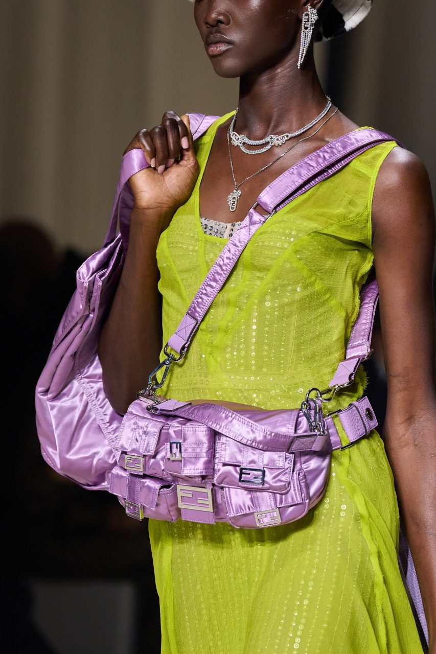 在2023度假系列登場的Fendi多口袋設計Baguette手袋,可以說存在感十足,當然Baguette已經是經典,但設計師Kim Jones再為這個實用手袋增加六個小口袋外觀裝飾的巧妙創意。在保留了傳統典型的袋型同時,每個小口袋都擁有FF標誌,不僅增加了額外的儲物空間,一些小物件如無線耳機、紙巾、唇膏等等都可以塞進小口袋,還令原本只有一個內層區分變成多個,更具備裝飾性美觀,聰明極了。這還不止,手袋除了單肩揹法,還增加腰包式揹法及斜肩揹,功能性再上一層,你能想像它有多百變和百搭,魅力十足。