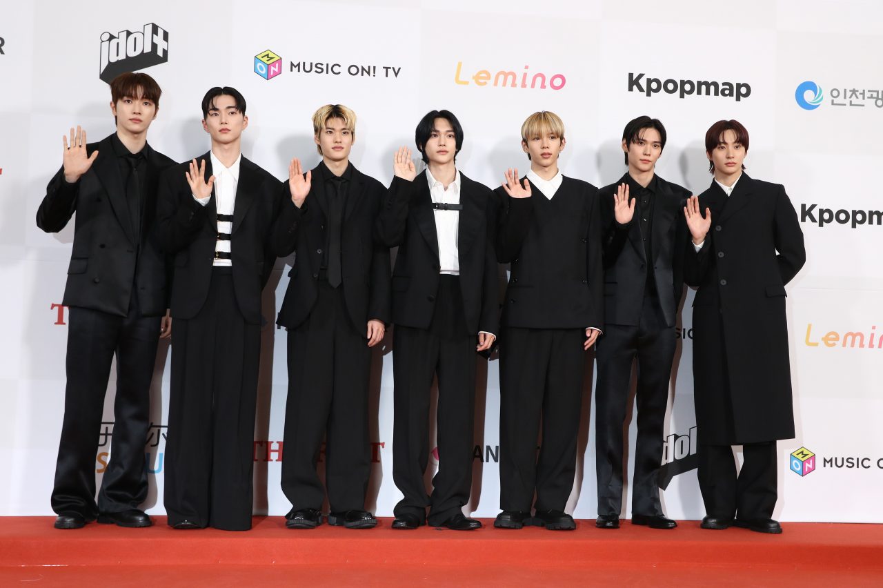 INCHEON, SOUTH KOREA - OCTOBER 10: Wonbin, Seunghan, Shotaro, Sohee, Sungchan, Eunseok and Anton of boy band Riize attend the 2023 The Fact Music Awards on October 10, 2023 in Incheon, South Korea. (Photo by Chung Sung-Jun/Getty Images)