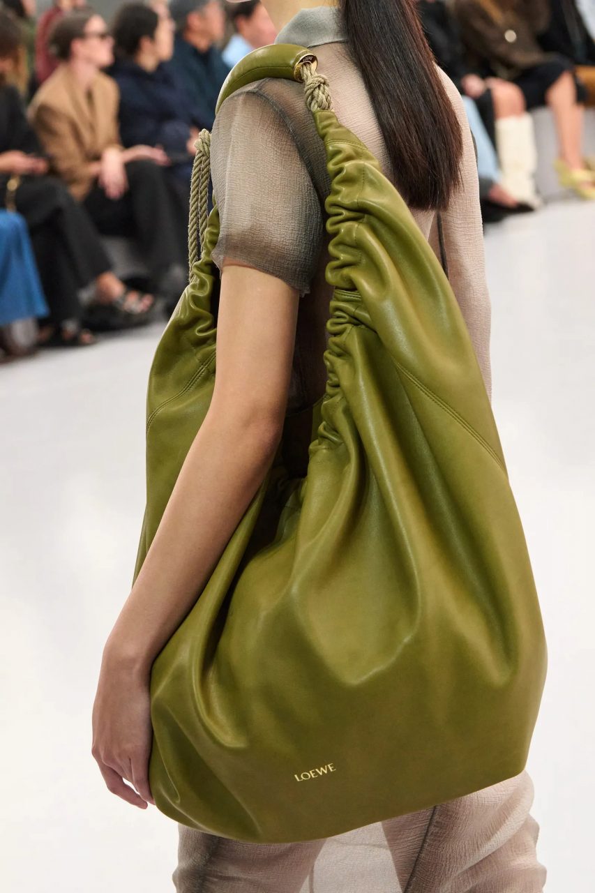 繼Victoria Beckham在2023年推出「Chain(杉木綠)」手拿包之後,其他時尚品牌也紛紛效仿,如Bottega Veneta推出卡其色水桶包、Loewe和Acne Studios推出微微帶有發光的綠色迷你款手袋。2024年,這股風潮依然強勁,橄欖綠和杏仁綠的手袋依然被時尚女孩們挎在肩上。