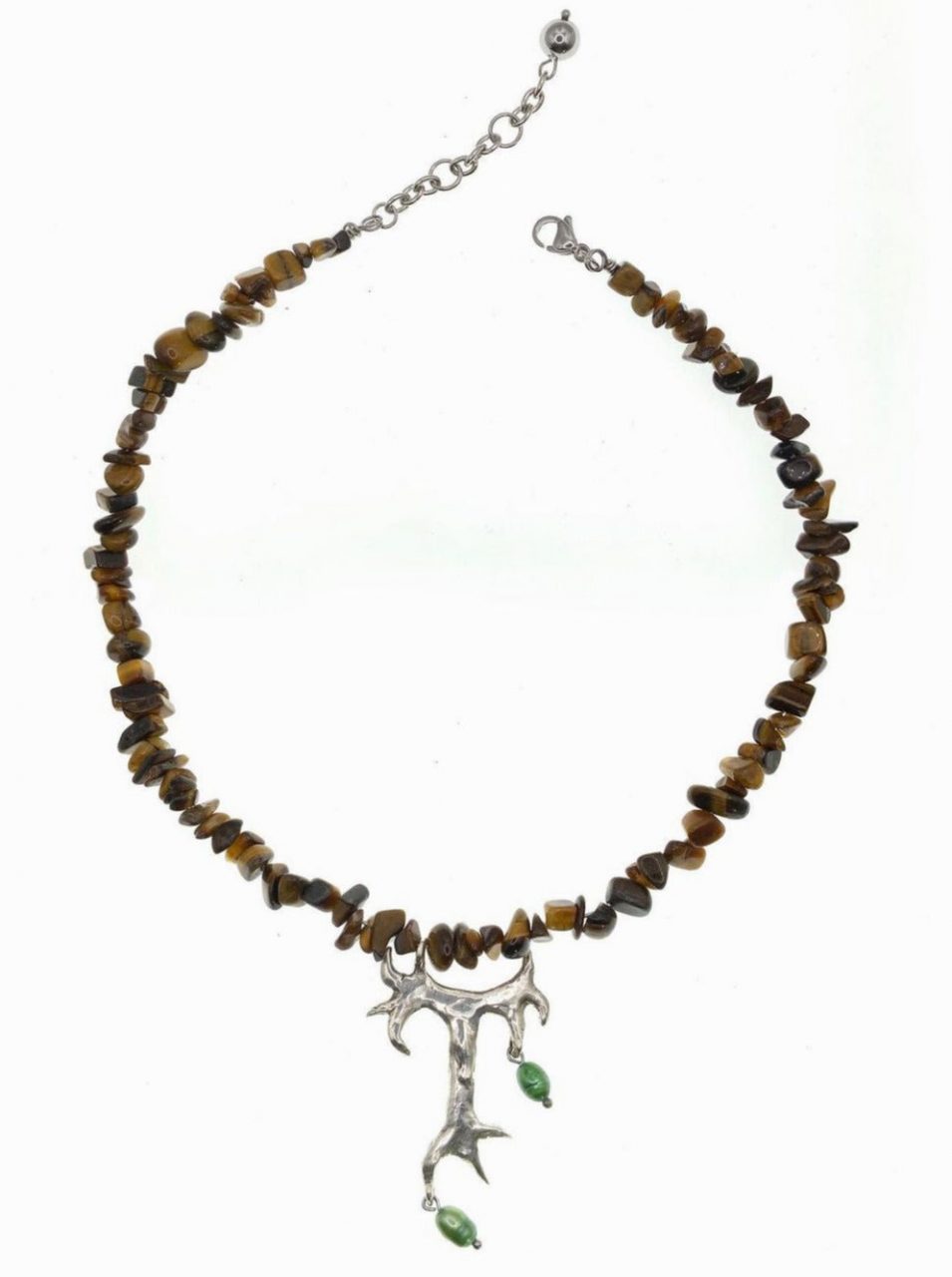 ZWYRTECH定製字母頸鏈主要用925純銀和定製串珠打造而成,虎眼石產自印度,珍珠母源自中國,特別的材質與設計不失為穿搭的點睛之筆。