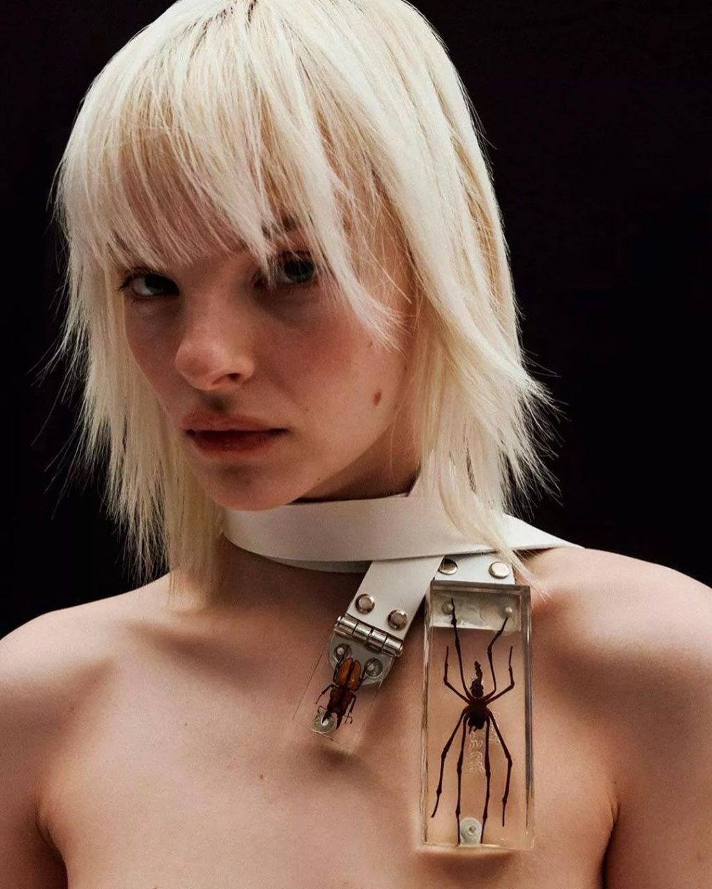 不僅是NewJeans的精彩演繹,還有小松菜奈也曾在Gentle Monster的廣告大片中佩戴ZWYRTECH的金屬領呔扣,配襯經典襯衫短裙,宛若一位從漫畫走出來的少女。