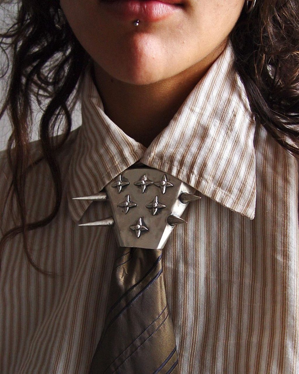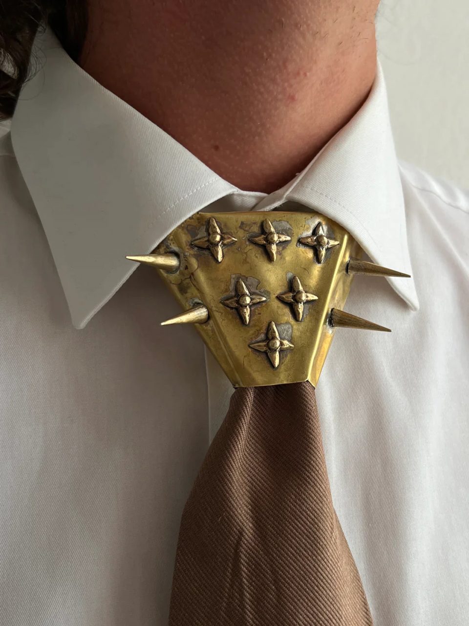 Zwyrtech設計這兩款金屬領呔扣旨在拉近服裝與珠寶之間的距離,材質選擇十分高質,主要使用純銀、黃銅製成,領呔扣可以穩穩牢固在任何領呔上,配上龐克風鉚釘令整體造型極具看頭!