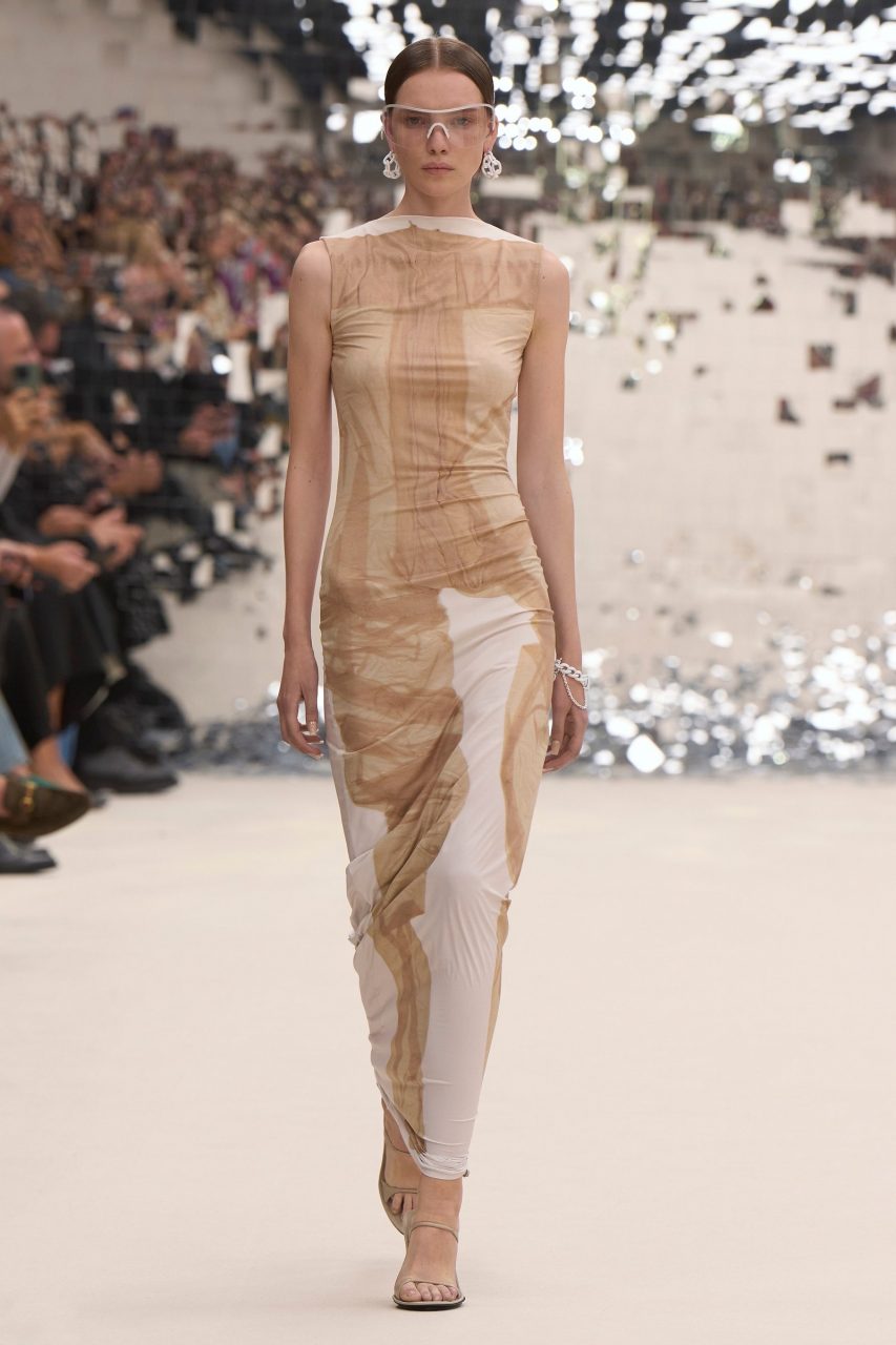 在 2024 春夏系列各大時裝展期間,裸色涼鞋攻佔了伸展台。它們通常搭配與鞋子顏色相呼應的中性色調服裝,例如淺米色或深粉色。如Acne Studios將其與長版裹身裙搭配,非常適合夏季晚裝;而Michael Kors 則證明即使是最簡單的日間服裝,它也能完美搭配。
