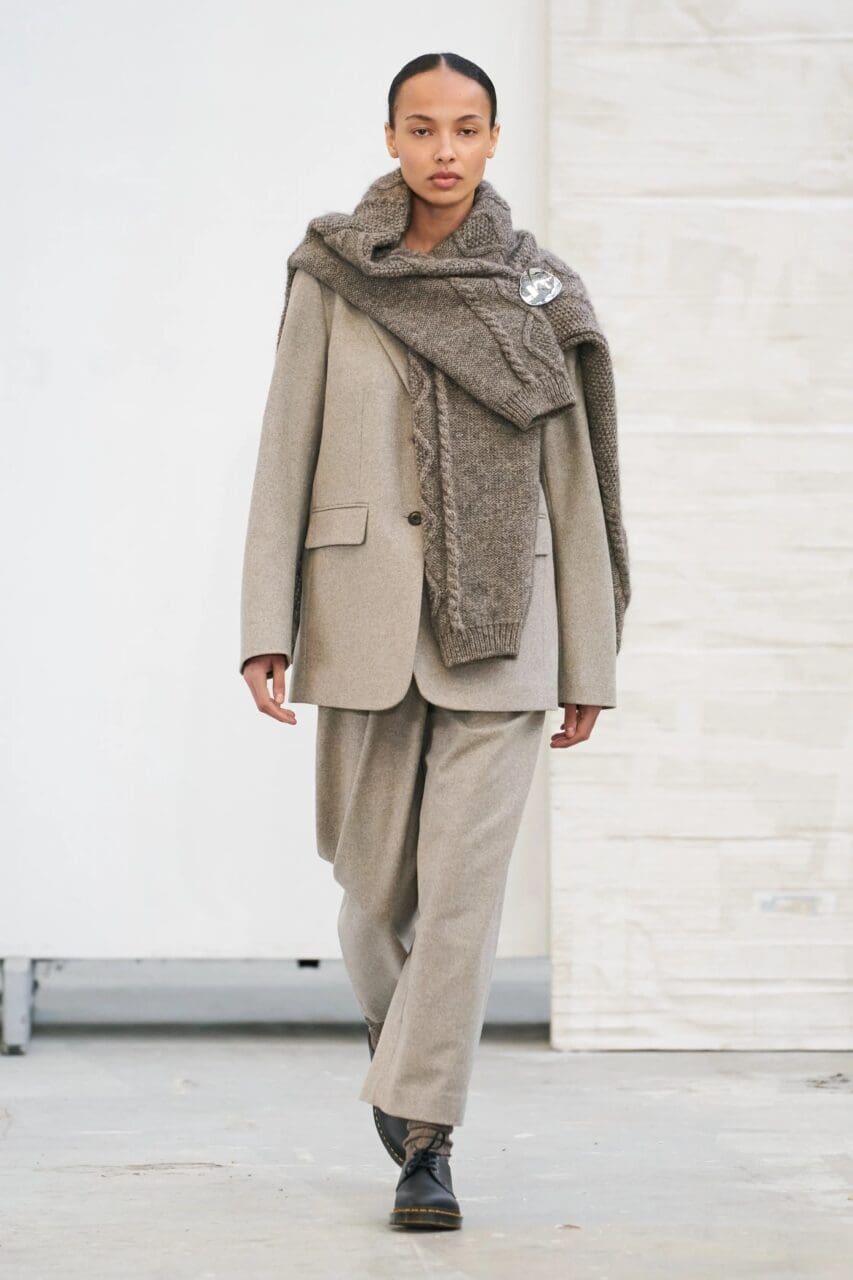 樟腦丸已準備就緒:因為羊絨季節又回來了。2024 年秋冬系列,邀請我們在針織衫造型上更具冒險精神和用心。海軍藍或燕麥色的圓領毛衣是今季一項很好的投資,儘管有些無聊,但今年秋天穿你最喜歡的毛衣最優雅的方式,就是巧妙地將它繞在頸上。這款肩部垂墜的技巧,曾出現在 Michael Kors 和 Skall 等品牌的時裝展場上,並隨後在巴黎時裝週上風靡一時,時尚界重量級人物紛紛以羊毛冷衫為自己的造型增添額外的魅力。但你要確保它綁成一個寬鬆的結——太過平整的結會讓你看起來像是在去高爾夫球場的路上。