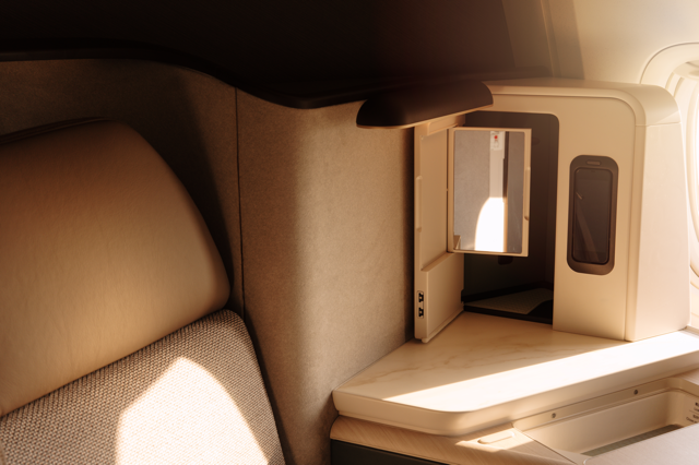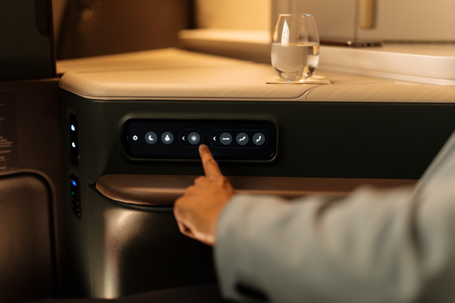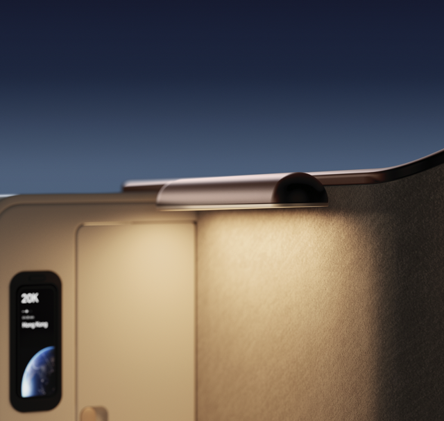 爾雅商務艙每個設計細節都展現出度身而設的工藝,機艙內照明設計靈感來自於自然光,柔和燈光讓人感受到如同置身於日出之時的溫暖,為旅途增添一絲舒適感。不同儲物空間可以隨意放置貴重物品,而專為防止刮傷設計的軟墊更是體貼入微,務求為客戶提供最輕鬆舒適的空中旅行。