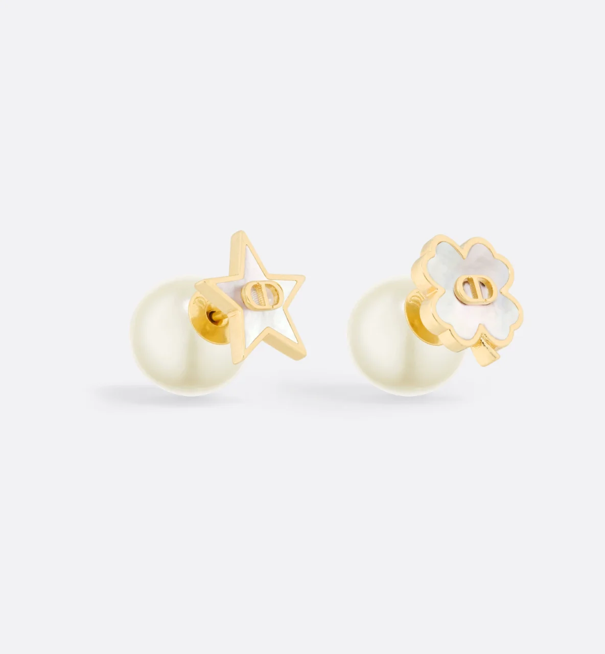 Dior 全新推出的這款 Tribales 耳環首先以不對稱設計引人注目,一側為星型,另一側為四葉草,兩者皆以珍珠母製成,上面飾有象徵 Christian Dior 的CD 標誌,而耳環的另一端則為樹脂珍珠。你可以調換左右款式佩戴,或是選擇將樹脂珍珠戴在前面,讓你一款耳環已經有多種戴法。日常生活時可以選擇將擁有 CD 標誌的珍珠母面戴在前方,左右不對稱的設計更顯年輕感,假如出席正式場合時,則可改為以珍珠一面示人,令造型更顯端莊,讓你隨時切換心情與造型。