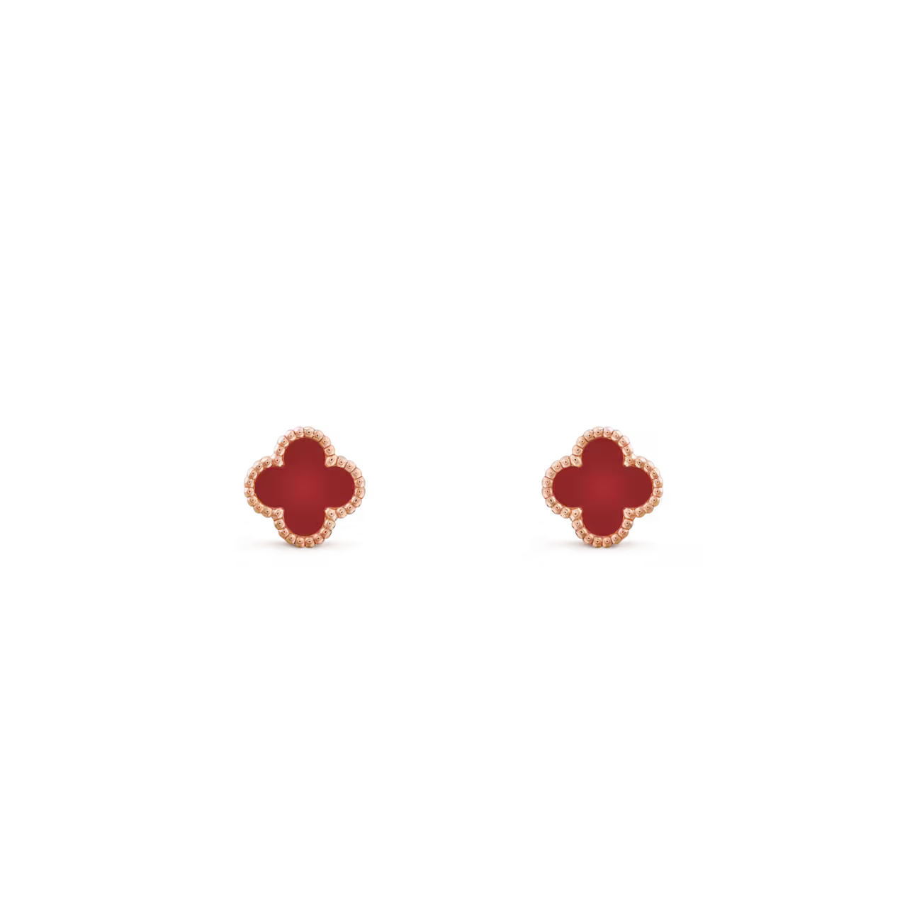 Van Cleef & Arpels 的 Sweet Alhambra 耳環小巧而精緻,四葉草造型深受女生歡迎,18K 玫瑰金配合標誌性的紅玉髓更是經典中的經典,這款耳環的百搭之處在於其迷你尺寸,適合任何臉型,由休閒生活到正式場合穿戴都無壓力,輕盈又自在地隨時展現自信一面,是一款象徵幸運的護身符。
