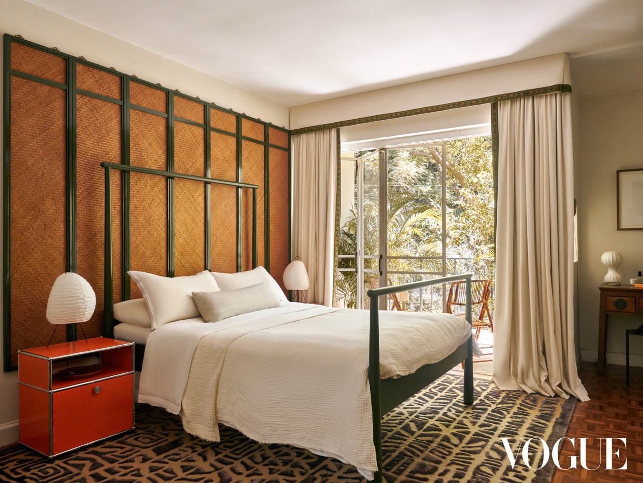 In the master bedroom, USM bedside tables and Akari Light Sculptures by Noguchi complement the custom bedframe