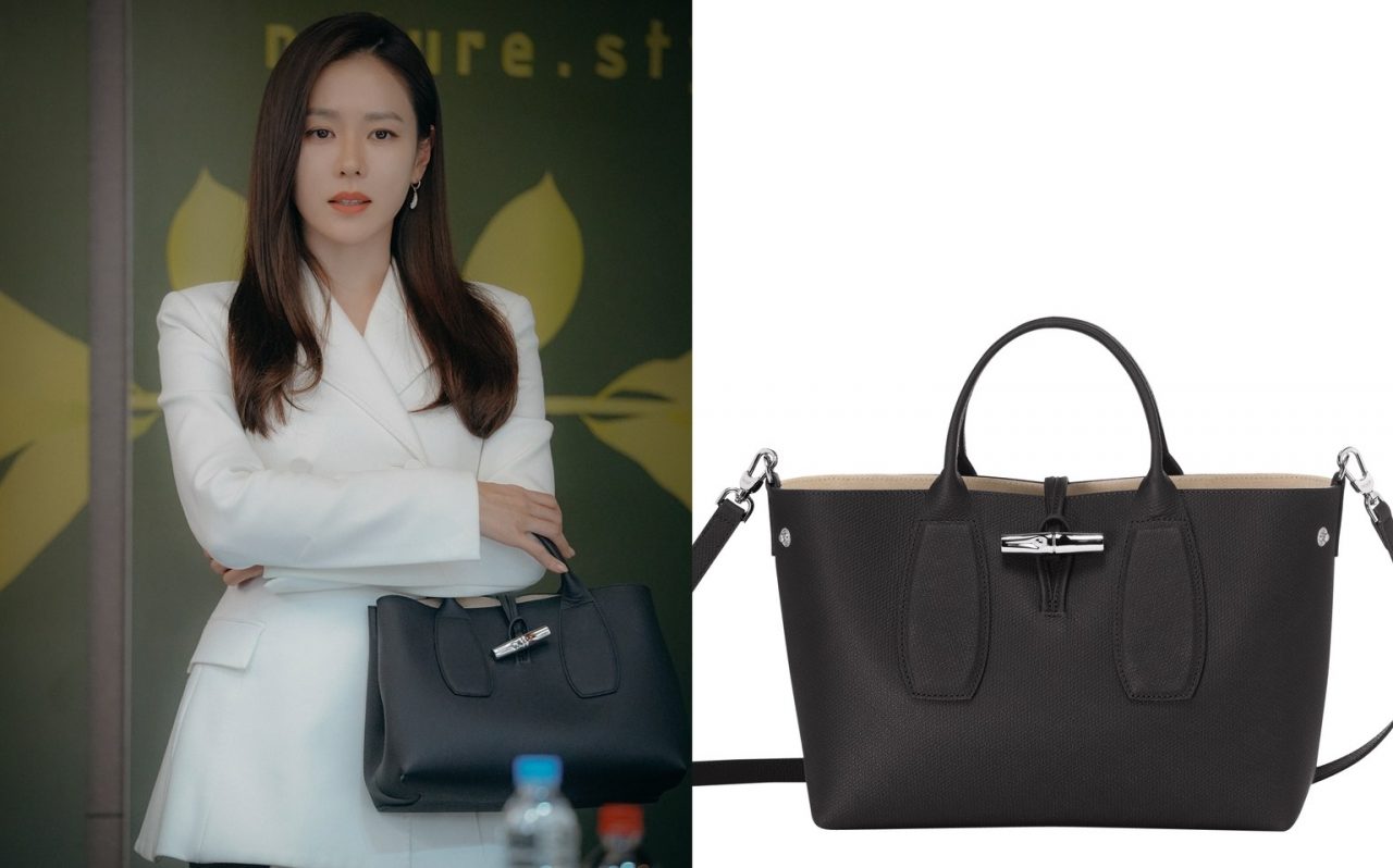 Longchamp全新Roseau系列在本季被重新打造,經典竹節鎖扣搭配加大後的提把提耳更加搶眼,孫藝珍在劇中包括出席家庭聚餐、以及從北韓回到南韓後出現在公司時,都拿著這款黑色的Roseau包,展現出獨立、自信現代時髦女性風範。