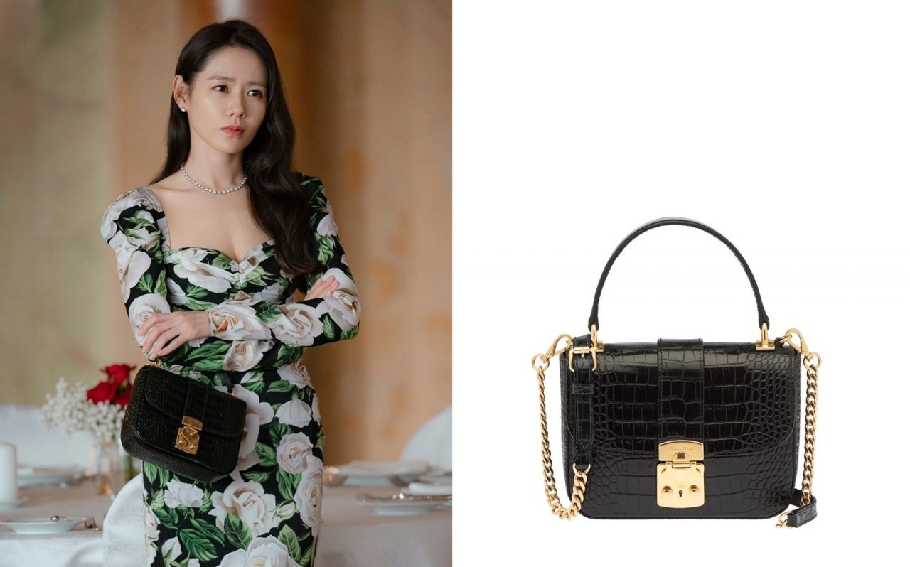 身為公司代表的尹世利,在出席重要場合時穿著花朵連身洋裝,在外賓的餐會上拿著的是MIU MIU鱷魚皮紋皮革手袋,鱷魚皮紋具有奢華的質感,黑色又能降低突顯感,不奪服裝的華麗視線。