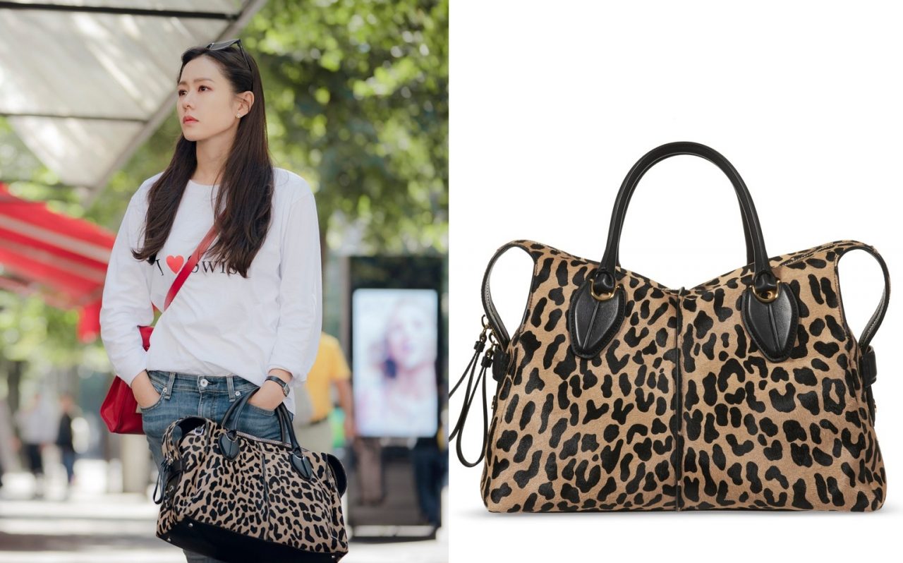 從經典傳奇包黛安娜王妃的最愛D-Bag延伸而來的TOD’S D-Styling Bag,精緻考究,是現代優雅的象徵,孫藝珍在劇中輕鬆的打扮,白色衛衣搭配牛仔褲,手拎豹紋圖案的D-Styling Bag,簡約的風格中又帶點華麗感,襯托她富家千金的氣質。