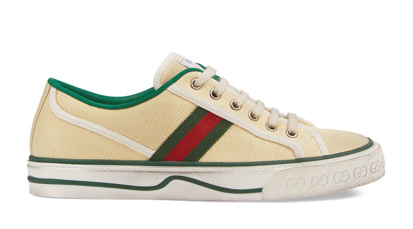 Gucci 藝術總監 Alessandro Michele 在瀏覽這家的意大利奢侈品牌的檔案時,得到一個主意:推出1977年的 Gucci Tennis 1977 網球,這是一款符合最新潮流的復古款屹。 男女皆宜的運動鞋,共有7種款式:3種採用舊帆布的普通款(黑色,米色和綠松石),3種帶有“GG”印花,最後是帶有“ GG”和米奇老鼠的棕色款。 必須考慮的因素,當年的原始模型現在已在佛羅倫薩的Gucci花園博物館展出。