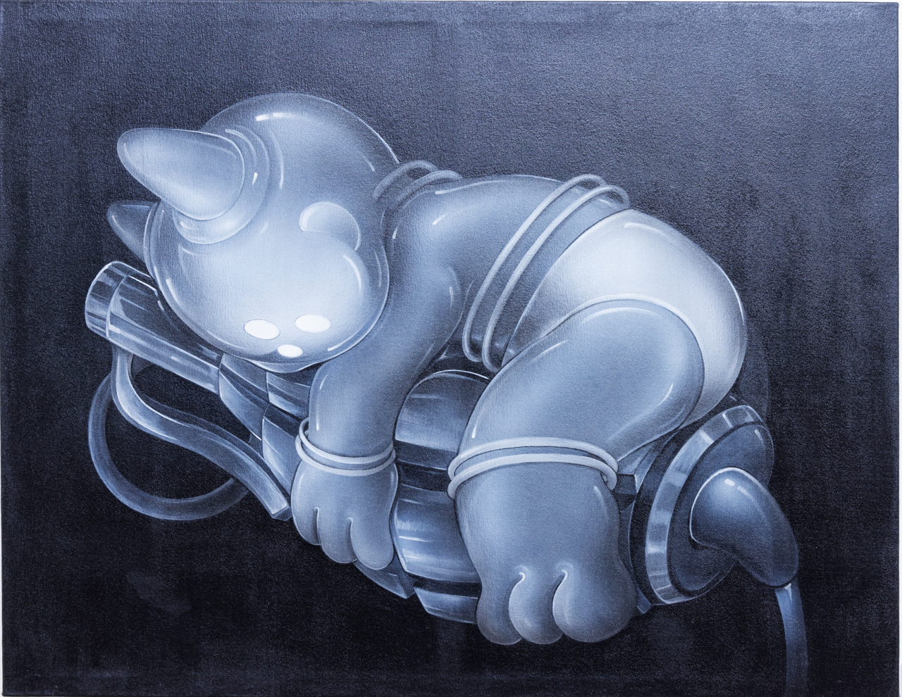 Step into the whimsical world of Kazy Chan at his new solo exhibition with JPS Gallery. The Twist of A Halo encapsulates the ever-expanding unique creative vision of the emerging Hong Kong artist, showcasing a variety of mediums through which Chan explores the notion of a halo. From playful ceramic sculptures and innovative ceramic-on-canvas pieces, to a series of new dry brush paintings on carved wood, the artist’s works distort the conventional form of the celestial symbol, creating space for boundless interpretation and newfound emotion. Through glowing halo-inspired lights and a series of quaint doorways that transform the gallery space, viewers are viscerally transported into the artist’s fuzzy realm of wafting halos and youthful angels.