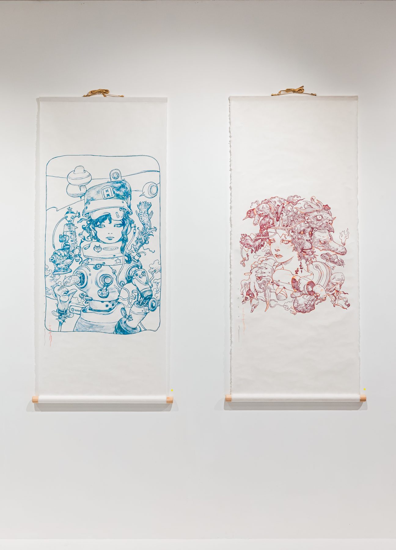 Fans of Japanese entertainment culture won’t want to miss this. Renowned around the world for a distinct illustrative style that has permeated both the video gaming and manga worlds, Katsuya Terada brings his latest works to Hong Kong with the help of Quiet Gallery. At the new exhibition titled, 「線」, whimsical female characters, technology and curious creatures collide in an enchanting biopunk realm. Terada’s mastery of his tools is evidenced by definitive lines of colour that dance across Japanese washi paper scrolls, and a large-scale illustration penned by the artist during live sessions at the gallery space.