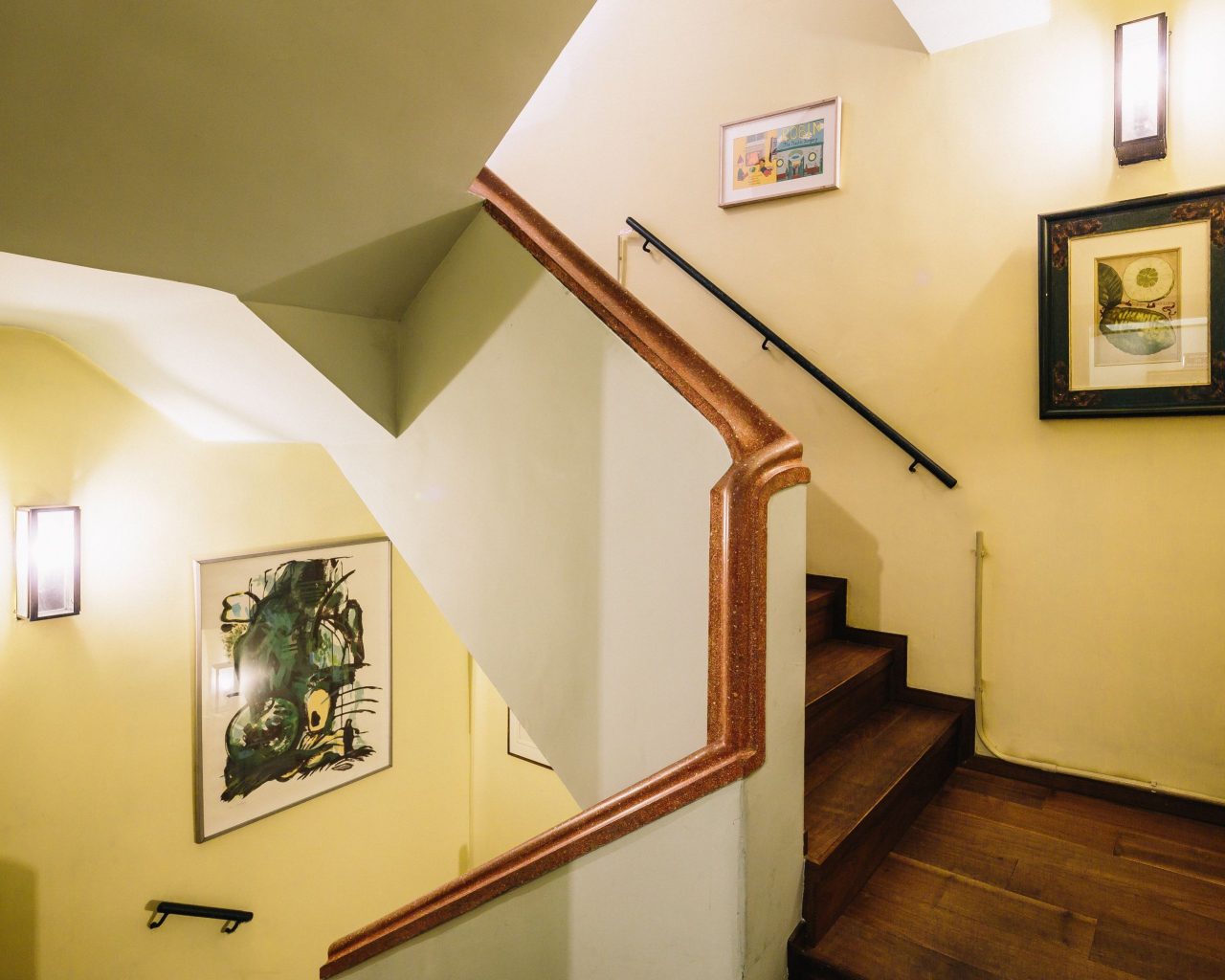 Downstairs is the less formal space, where Barbara’s bedroom and more relaxed sitting room is – the two rooms separated by a built-in bookcase – and where a huge George Smith sofa was delivered via crane. Virtually floor-to-ceiling windows overlooking the greenery of the park opposite flood the space with light, while a fan lamp sourced on Hollywood Road sets the after-dark mood. Upstairs again is a rooftop terrace with 360-degree views of the neighbourhood that Barbara is happy to call home.