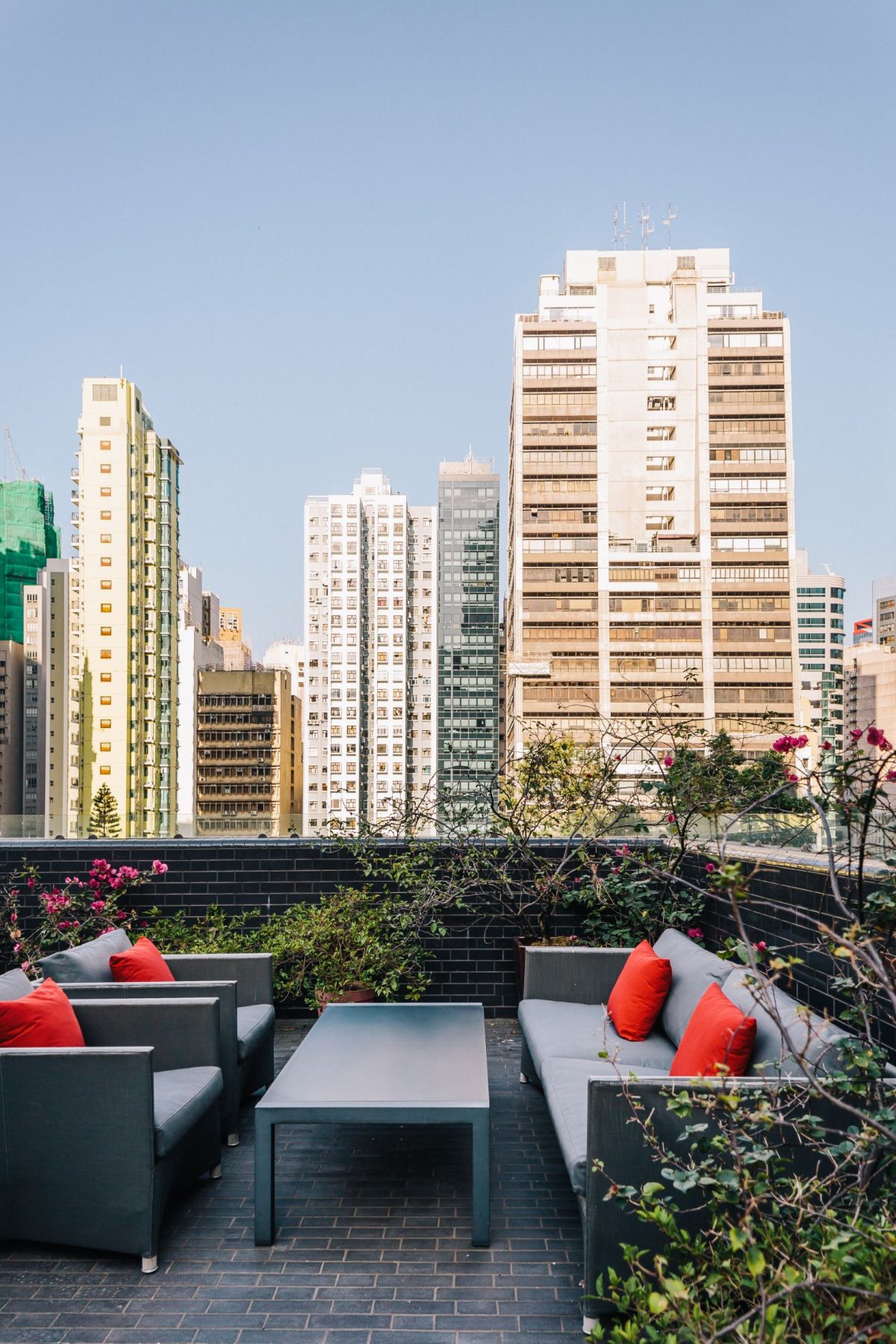 Downstairs is the less formal space, where Barbara’s bedroom and more relaxed sitting room is – the two rooms separated by a built-in bookcase – and where a huge George Smith sofa was delivered via crane. Virtually floor-to-ceiling windows overlooking the greenery of the park opposite flood the space with light, while a fan lamp sourced on Hollywood Road sets the after-dark mood. Upstairs again is a rooftop terrace with 360-degree views of the neighbourhood that Barbara is happy to call home.