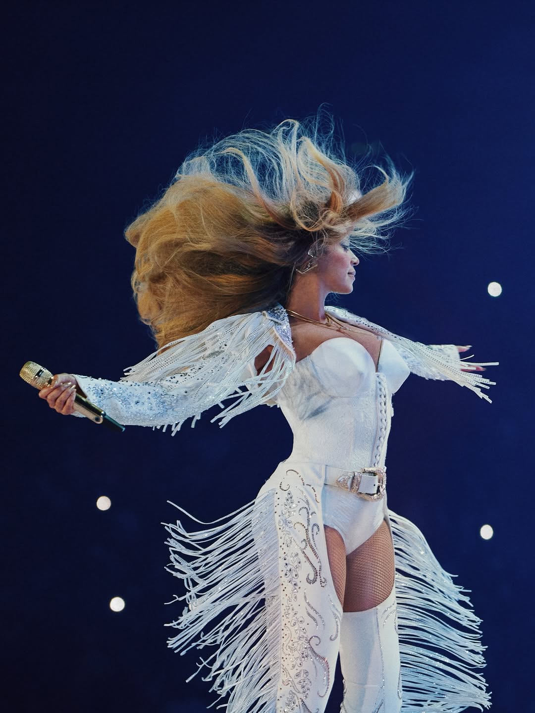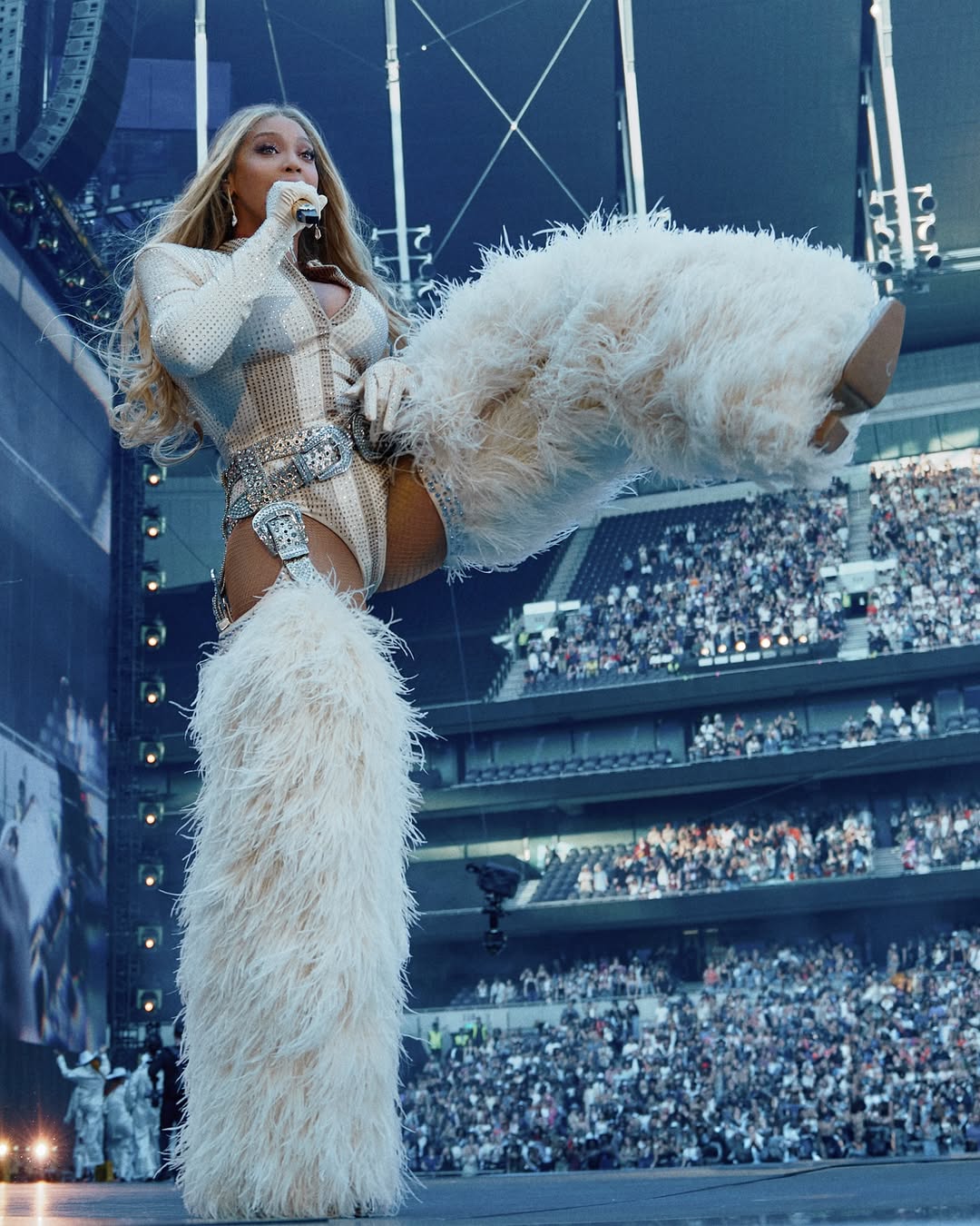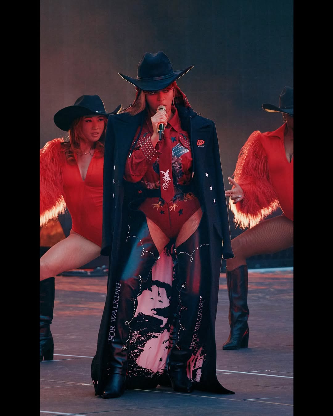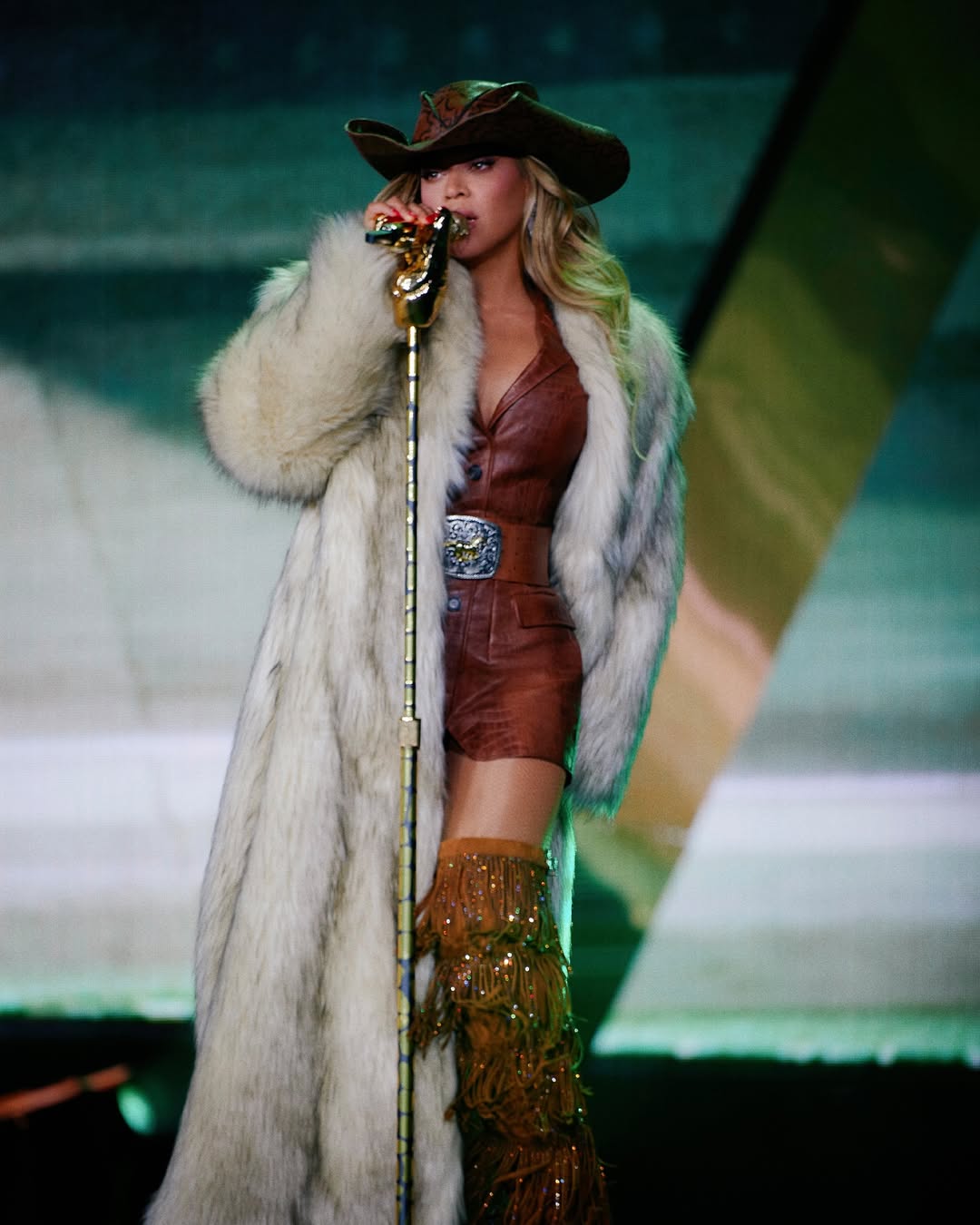 April 28, 2025 Beyoncé performing in Los Angeles for the Cowboy Carter Tour wearing Diesel