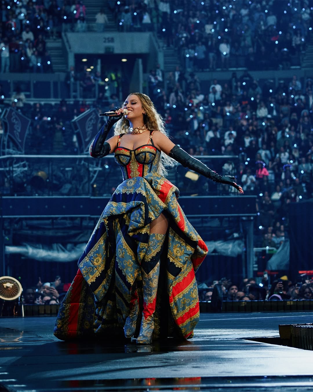 With Cowboy Carter, Beyoncé stretched the boundaries of the country genre and remade it in her own image, and she brought the same innovation to her Western-inspired looks for the tour. Patterns traditionally associated with cowboys, like plaid and paisley, were reimagined and cleverly incorporated into several of her outfits.