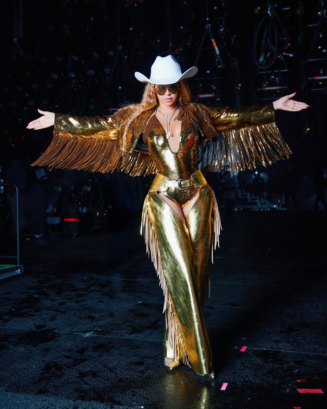 From the stages to the streets, the Cowboy Carter Tour became a cultural phenomenon. Fans were so inspired by her looks on the tour that they matched her energy by showing up in cowboy boots, hats and bandanas, fueling a craze for Western aesthetics in fashion. So saddle up, because we’re about to look back on the best looks that Beyoncé gave us on the Cowboy Carter Tour, from star-spangled bodysuits to Levi’s jeans.