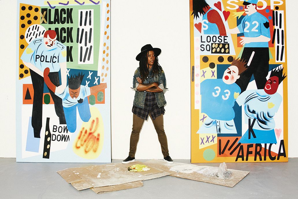 Nina has a great way of capturing the frenzied and distraught side of contemporary culture with a particular satire that connects with the viewer. Her works touch on all subjects, including race, religion, sex and art history. They are almost like an overflow of ideas yet balanced with a crazy ad-lib configuration that somehow compresses an interchangeable notion that anyone can cohere to.