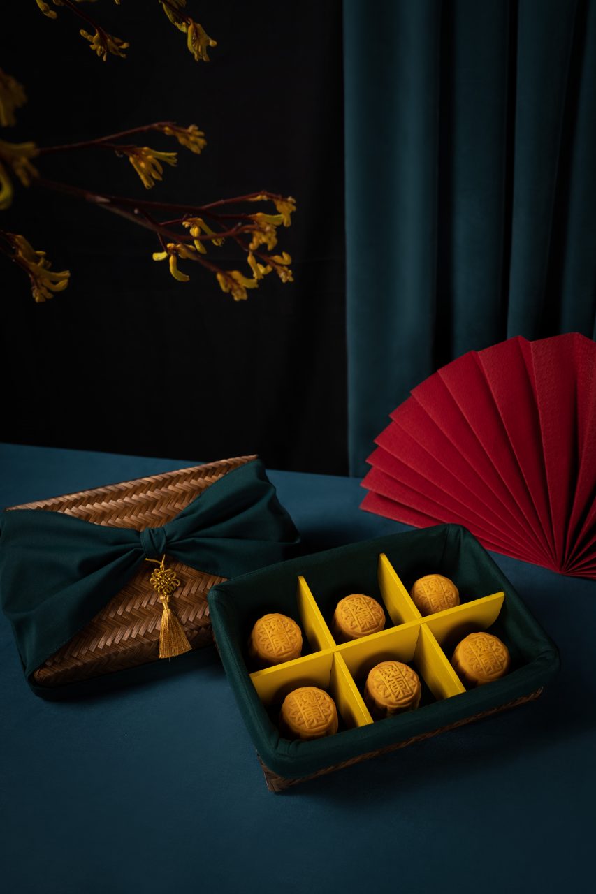 Visual spectacles meet gourmet delights with Yat Tung Heen’s all-new hand-woven bamboo mooncake gift sets. The sophisticated bamboo box is knotted with deep teal fabric, and the six delicate mini mooncakes ensconced within are equally photo-worthy. These come in a series of much-loved traditional flavours, including egg custard, white lotus seed paste, and red bean paste with mandarin peel.