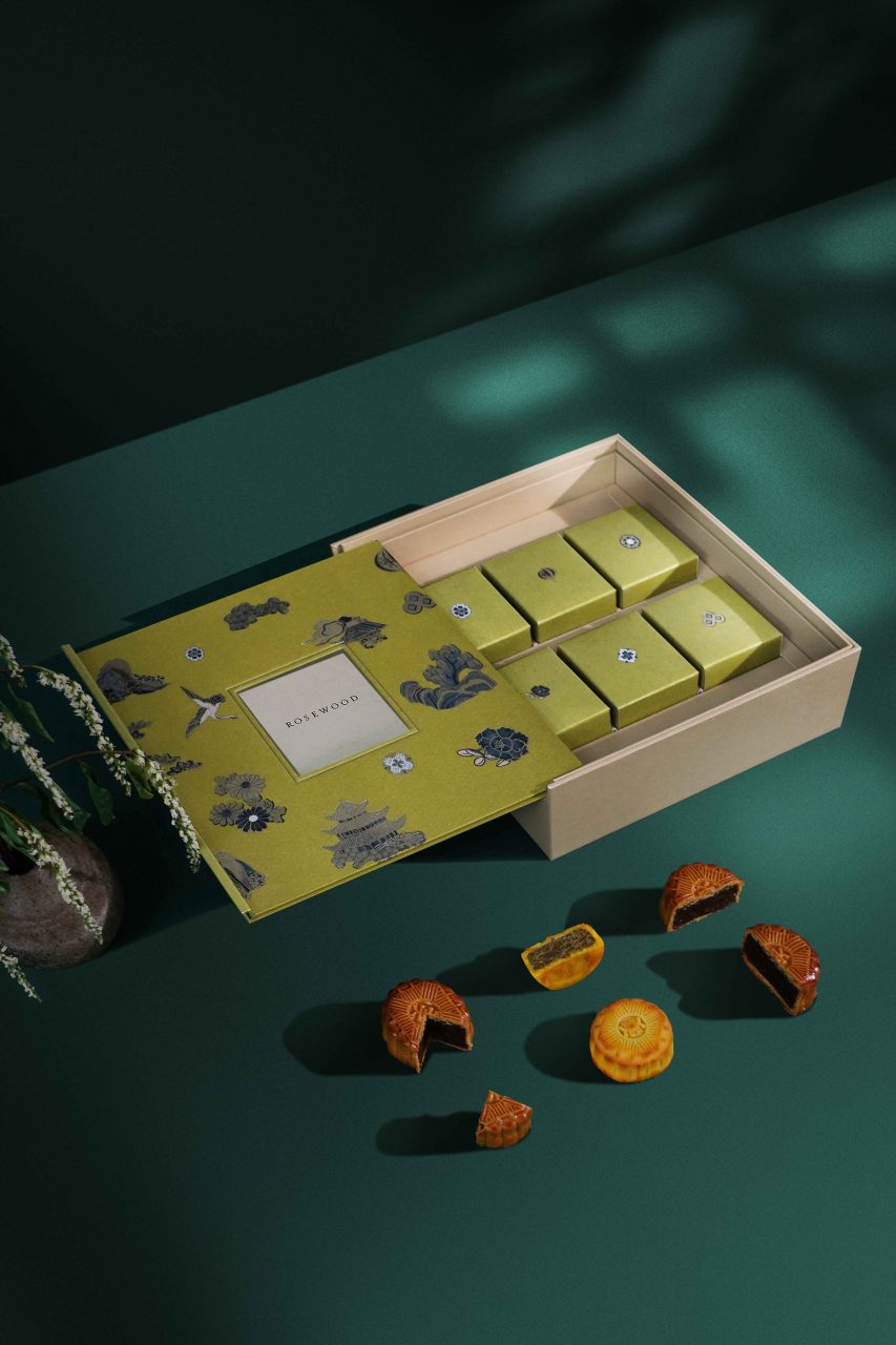 The House Collective’s ‘Moonlit Discoveries’ series takes you on a journey to four cities – Hong Kong, Shanghai, Beijing and Chengdu. Open up the travel journal-inspired boxes to find eight mini mooncakes packed inside, bursting with a range of flavours: these span the classics, such as lotus seed paste with egg yolks or vegan red bean paste garnished with mandarin peel, to coffee with sea-salted caramel and even parma ham.