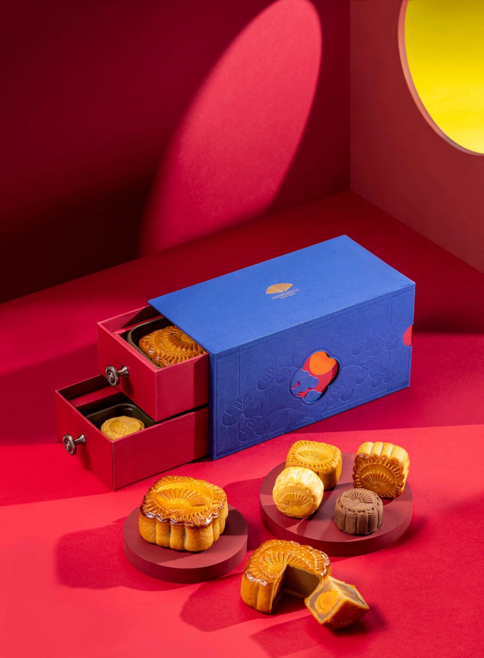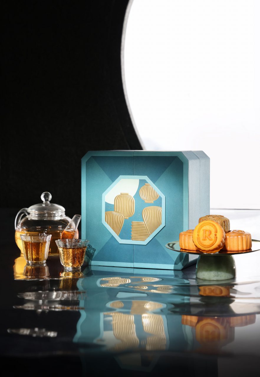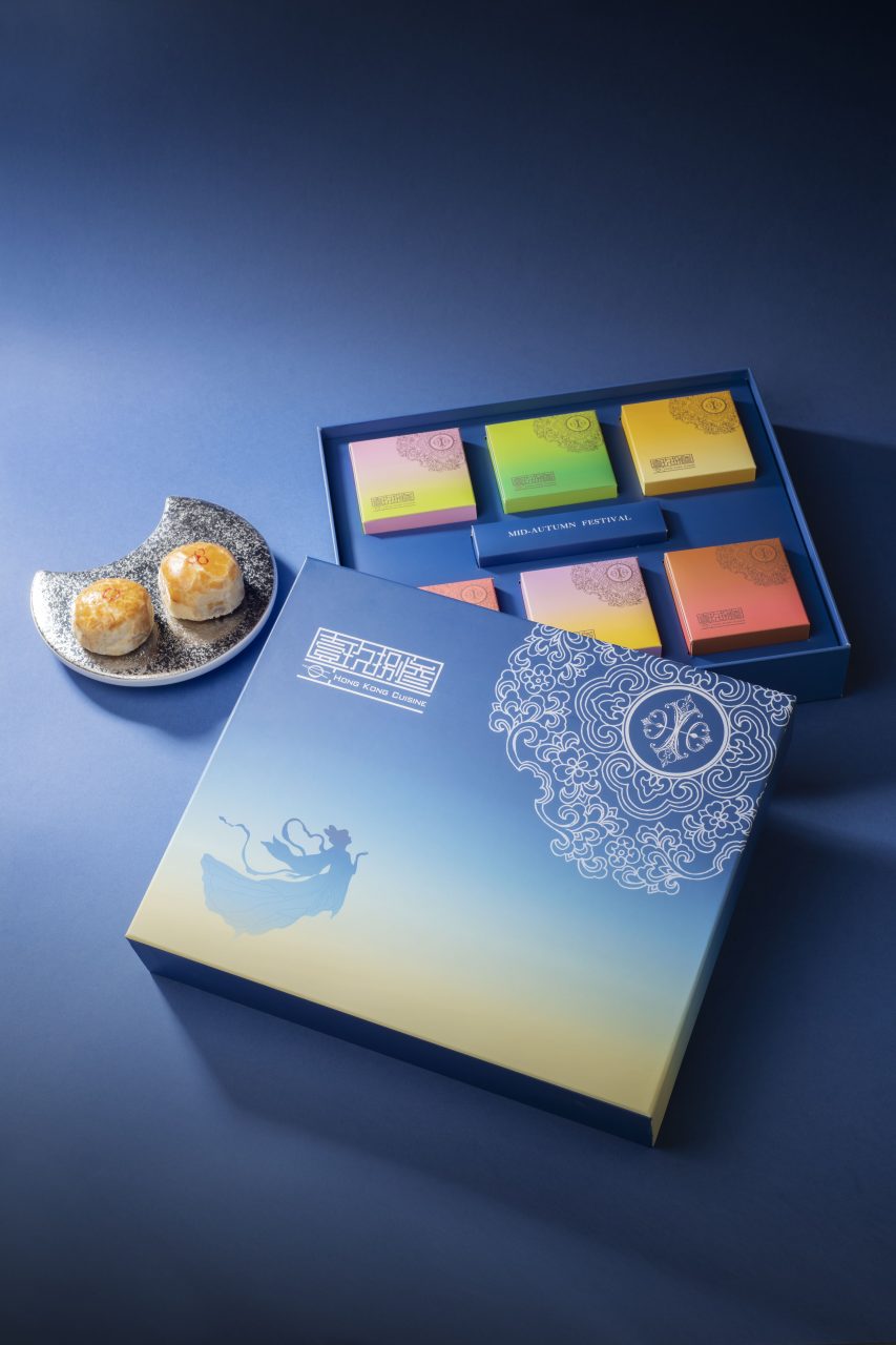 Let Regent Hong Kong transport you to the moonlit Victoria Harbour with their limited-edition mooncake gift set. The box unfolds to reveal a charming design of lanterns and a full moon, with eight mini mooncakes hiding behind the blue and gold. The assortment of flavours include Winter Citrus Tea Custard, accompanied by a range of classics. Pair the desserts with the Regent’s exclusive black tea blend – with fruity notes and lychee essence, they’ll compliment the mooncakes’ rich textures well.