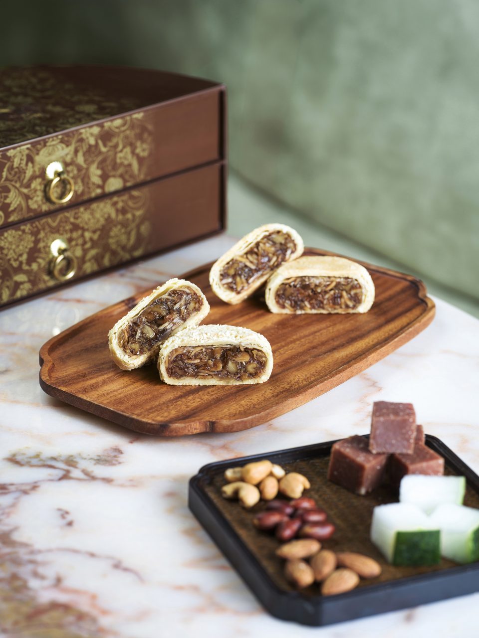 Island Shangri-La returns with brand-new additions to its sumptuous mooncake collection. Its newest venture – velvety Musang King durian lava mooncakes- promises a luscious experience for the tastebuds, whilst the Summer Palace Luna Mochi Mooncakes are packed with different textures of pistachio and taro. Sustainability is at the heart of the Shangri-La’s gift sets, with the possibility of the Tangerine Peel set being repurposed into an elegant jewellery box – whichever you choose, it’ll be a feast for the eyes.