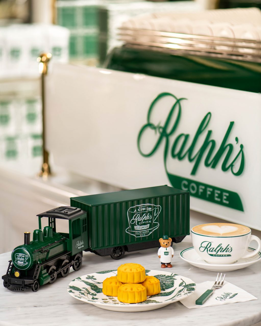 Embrace the spirit of travel with the brand-new Ralph’s Coffee mooncake set. This year’s installation in the café’s innovative gift box series is a quaint steam locomotive, carrying six mini mooncakes with velvety fillings of custard lava and white lotus paste lava. The charming green and white model train features an adorable figure of a bear, making the mooncake set a fun collectible.