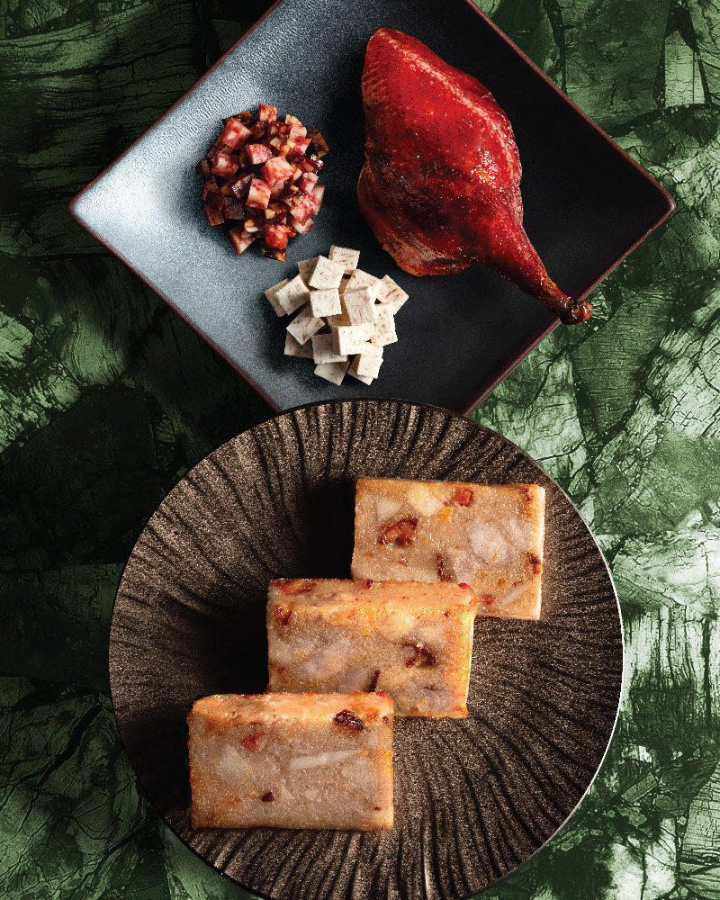 Jade Garden returns with an array of Chinese New Year puddings that bring innovative twists to traditional flavours. For seafood lovers, the Sea Urchin and Scallop Rice Pudding (HK$305) is packed with scallops and sea urchins that are encased in a crispy rice pudding. The Roasted Duck and Taro Pudding (HK$255) make use of the fragrant Lipu taro and roasted duck, complemented by savoury dried shrimp, Chinese pork sausages, and liver sausages. Other staples offered are the Turnip Pudding with Ham and Conpoy (HK$275) and Waster Chestnut Pudding (HK$242).