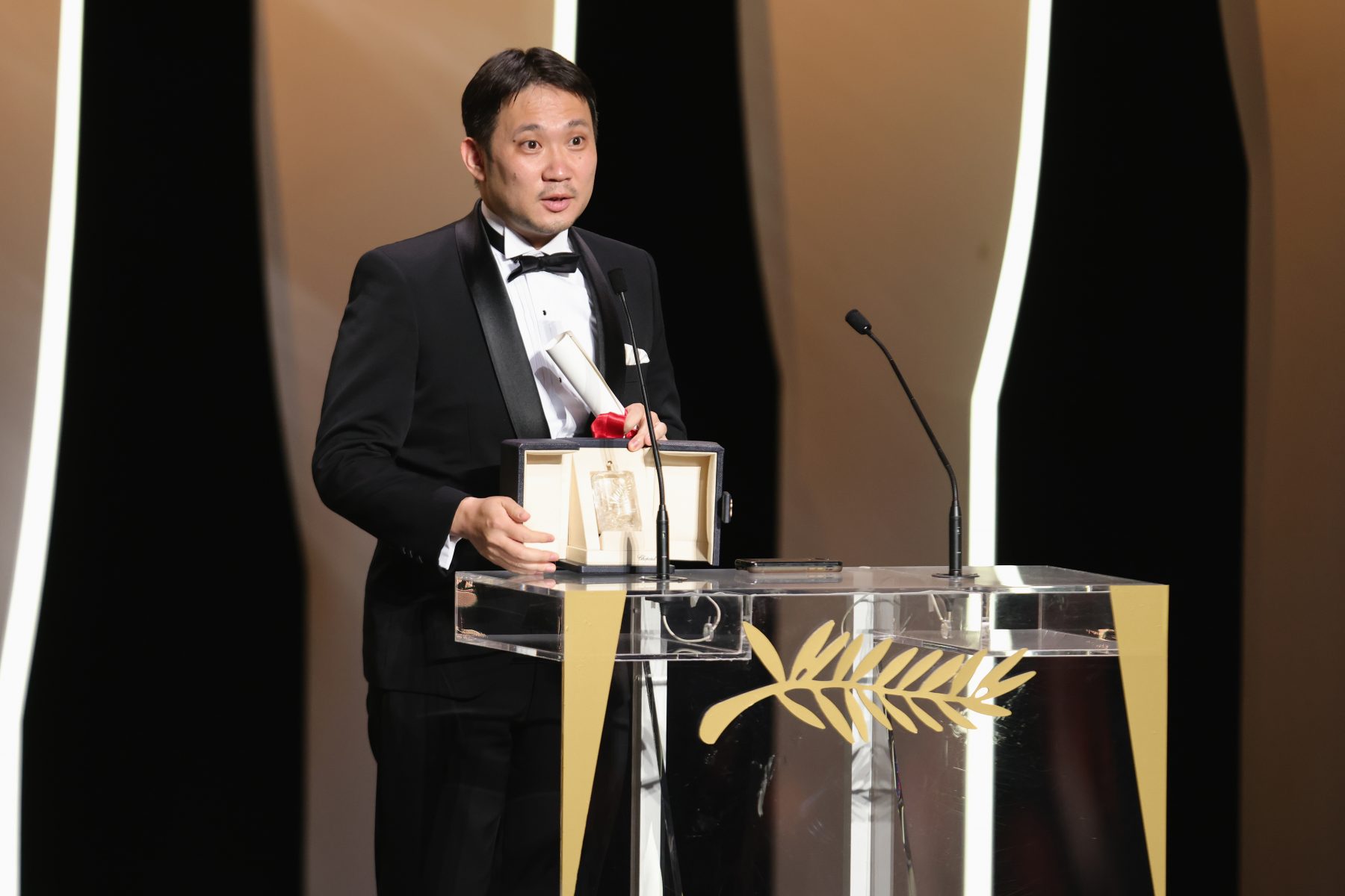 July 17, 2021 Director Ryusuke Hamaguchi accepts the Best Screenplay Award for Drive My Car at the 74th annual Cannes Film Festival in Cannes, France