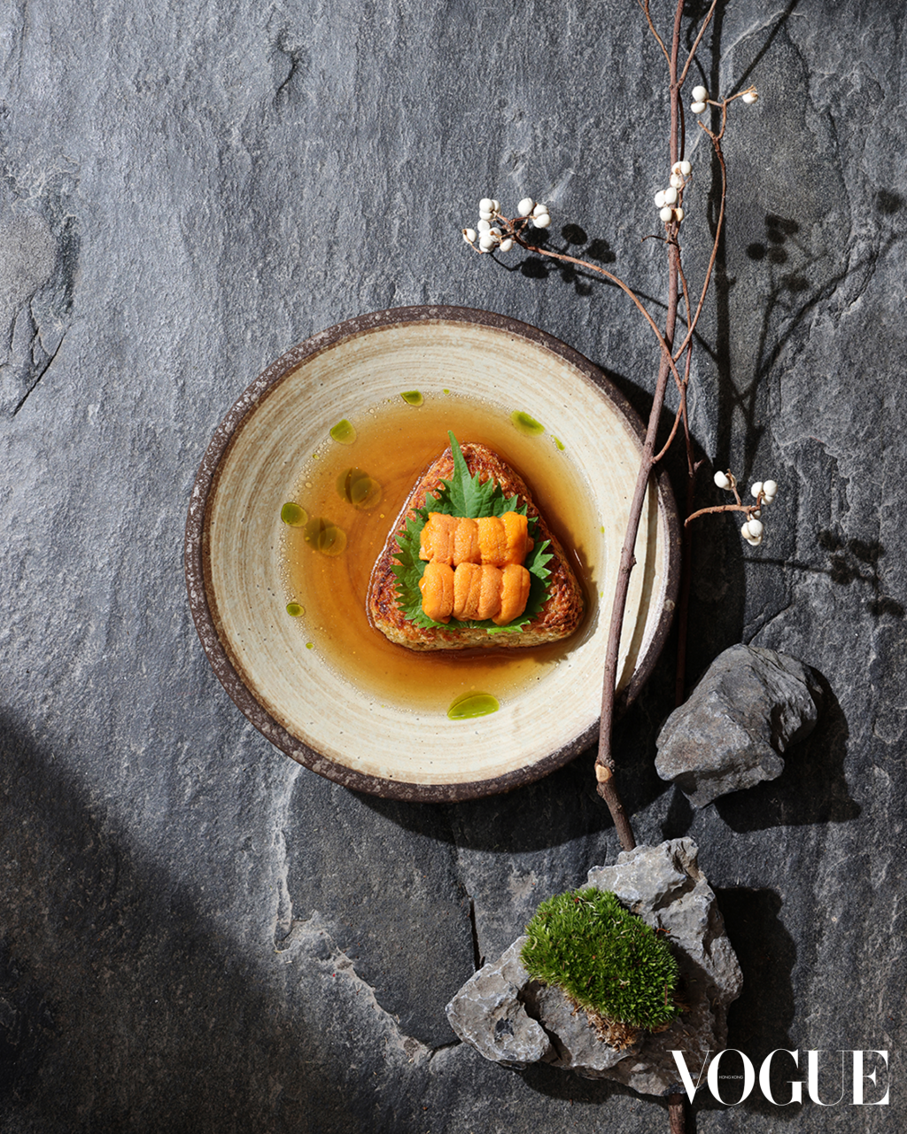 Censu is the very first independent venture of Shun Sato, the decorated Chef formerly helming the kitchens at Belon, Ho Lee Fook and Fukuro. The space, designed by JAMO Associates, is a tranquil sanctuary tucked away on Gough street, with wabi-sabi-inspired interiors that also borrow elements from Sato’s grandmother’s home in Sendai. Every element of Censu reflects Sato’s careful curation, intention and innovation, and Chef’s “unigiri” dish is but one example of this. A traditional Japanese onigiri is grilled, topped with uni, and served in a broth of abalone dashi. The dish is then mixed tableside for an end result resembling a risotto: the grilled rice mixes with the potent, flavourful dashi to give an al-dente chew reminiscent of the Italian rice dish, while the pieces of uni add bursts of umami with every bite.