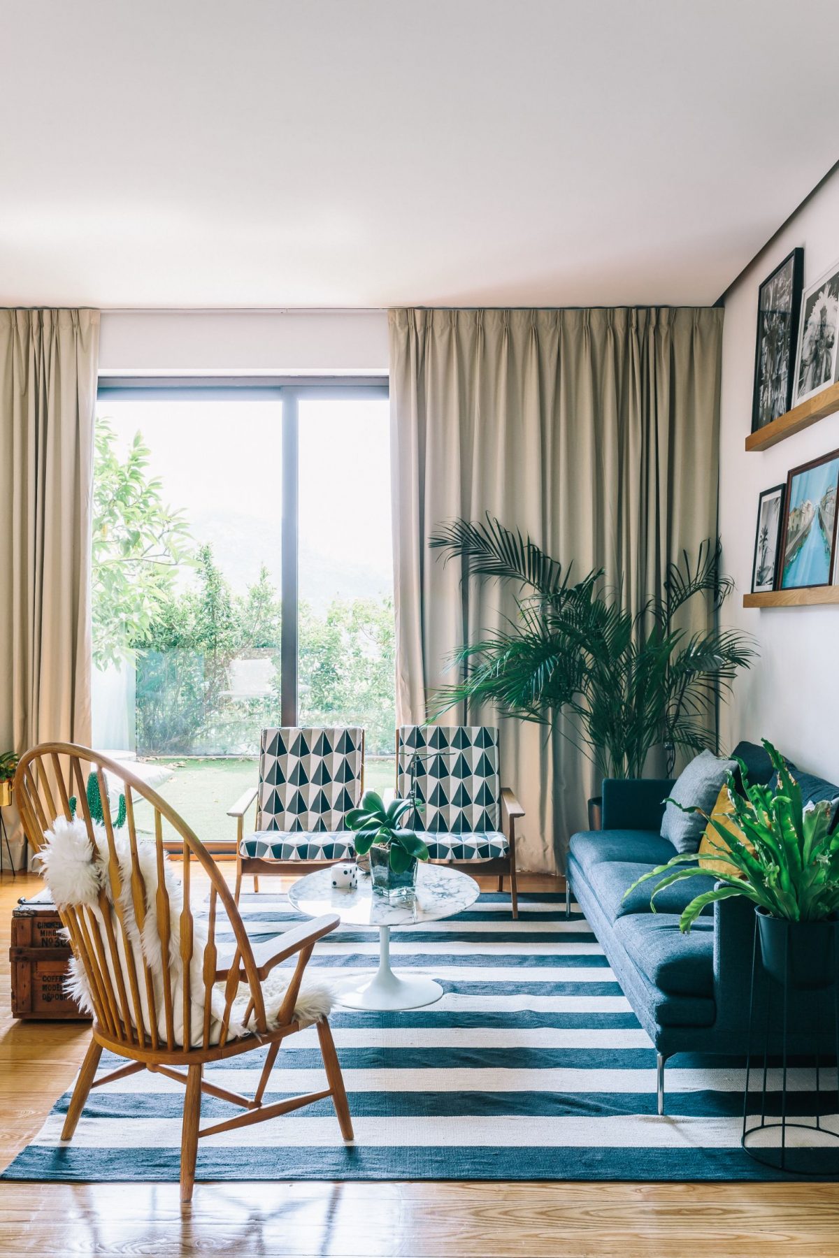 The sitting room is home to a pair of fifties-print deck chairs salvaged from a flea market in France