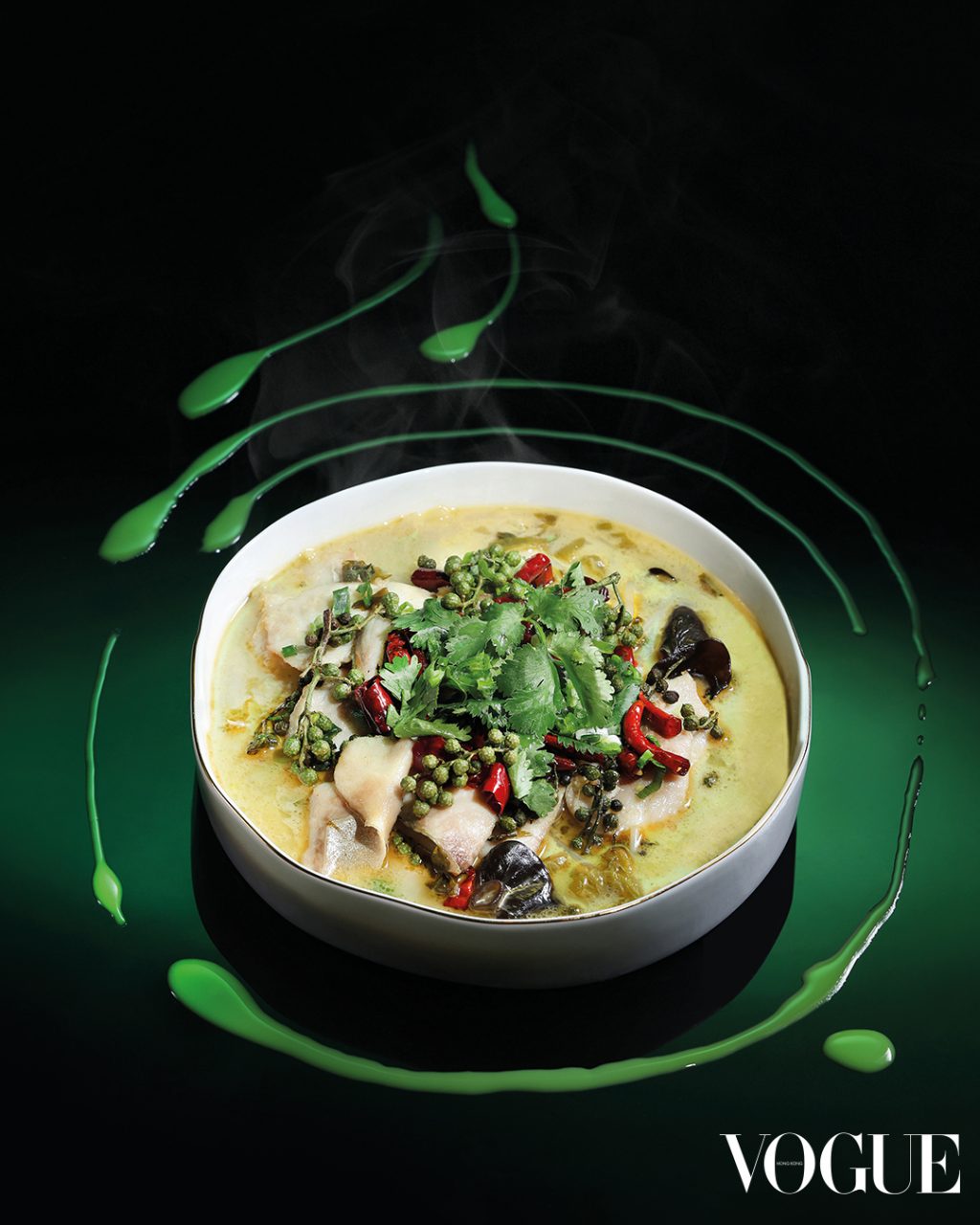 Black Sheep Restaurants’ newest eatery pays homage to the mouth-numbing, tongue-tingling delight that is Sichuan food. Having formerly headed the kitchen at Chilli Fagara, Head Chef Robert Wong has ample experience preparing the cuisine’s signature dishes, while Fuschia Dunlop, renowned Chinese cooking expert, also informed the menu. The pomfret stew with pickled mustard greens is a traditional Sichuan dish bursting with flavour, showcasing the cuisine’s vast range of flavour profiles including spicy, sweet, sour, savoury and umami. “We use house-made pickled mustard greens that are marinated in a lychee vinegar for two weeks, rather than the traditional rice vinegar. This adds stronger aromatics to the dish,” explains Robert. The soup stock is punctuated with Sichuan peppercorns and crunchy bean sprouts while tender golden pomfret fish swim in the masterful amalgamation of flavours. “Often, Sichuan cuisine is misunderstood. Great Sichuan food is about forming an overall symphony of flavours, and the kind of ‘spice’ can vary greatly.”