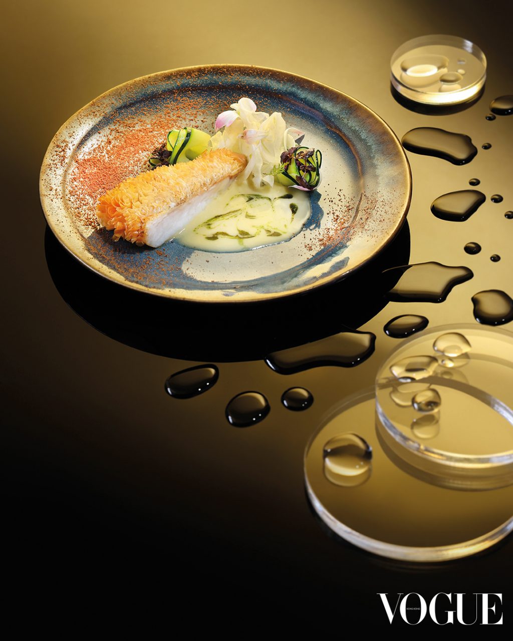 Fusing Japanese tradition with contemporary Western influences, Maison Meiji is a multi-dining concept host to a shochu cocktail lounge, a coffee and tea bar and a bistro. Head Chef Yusuke Kitade’s Amadai dish features choice Japanese produce – the traditional Japanese Amadai Matsukasayaki – artfully prepared using the French Poêle cooking method and served with a creamy yellow beurre blanc sauce dotted with green shiso leaf purée. “I was inspired by the introduction of French culinary techniques into Japanese cuisine,” explains Yusuke. The results certainly speak for themselves, with the crispy crunch from the Japanese Amadai skin contrasting beautifully with the buttery flavour and flaky texture of the meat. “Because the fish is naturally rich, I enhance its flavour with lighter ingredients, like the leeks. A proper balance of flavours is crucial.”