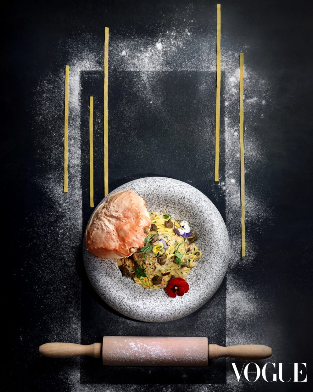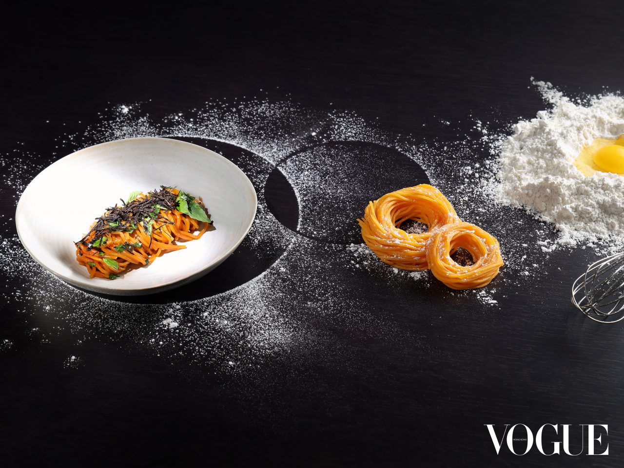 Fusing the buzzing energy of a Japanese izakaya with Italian fine-dining formalities, Pazzi Ishokonmei highlights quality Japanese ingredients with traditional Italian cooking techniques. The miso crab tagliolini sees fresh, handmade tagliolini pasta paired with a flavourful sauce made with Japanese crabmeat, crab roe paste and miso. The miso adds depth and complexity to the fresh sweetness of the Japanese crab meat, while the addition of crab roe paste deepens the umami flavours, the rich sauce adhering to the springy texture of each tagliolini strand. Chef Ky To was first taught how to make tagliolini at 24 years old by an Italian chef, and uses a roller machine on handmade dough to achieve the desired thickness before folding and hand cutting the pasta.
