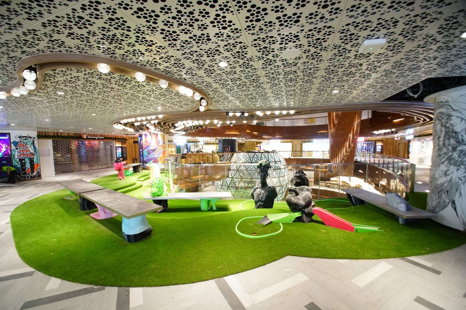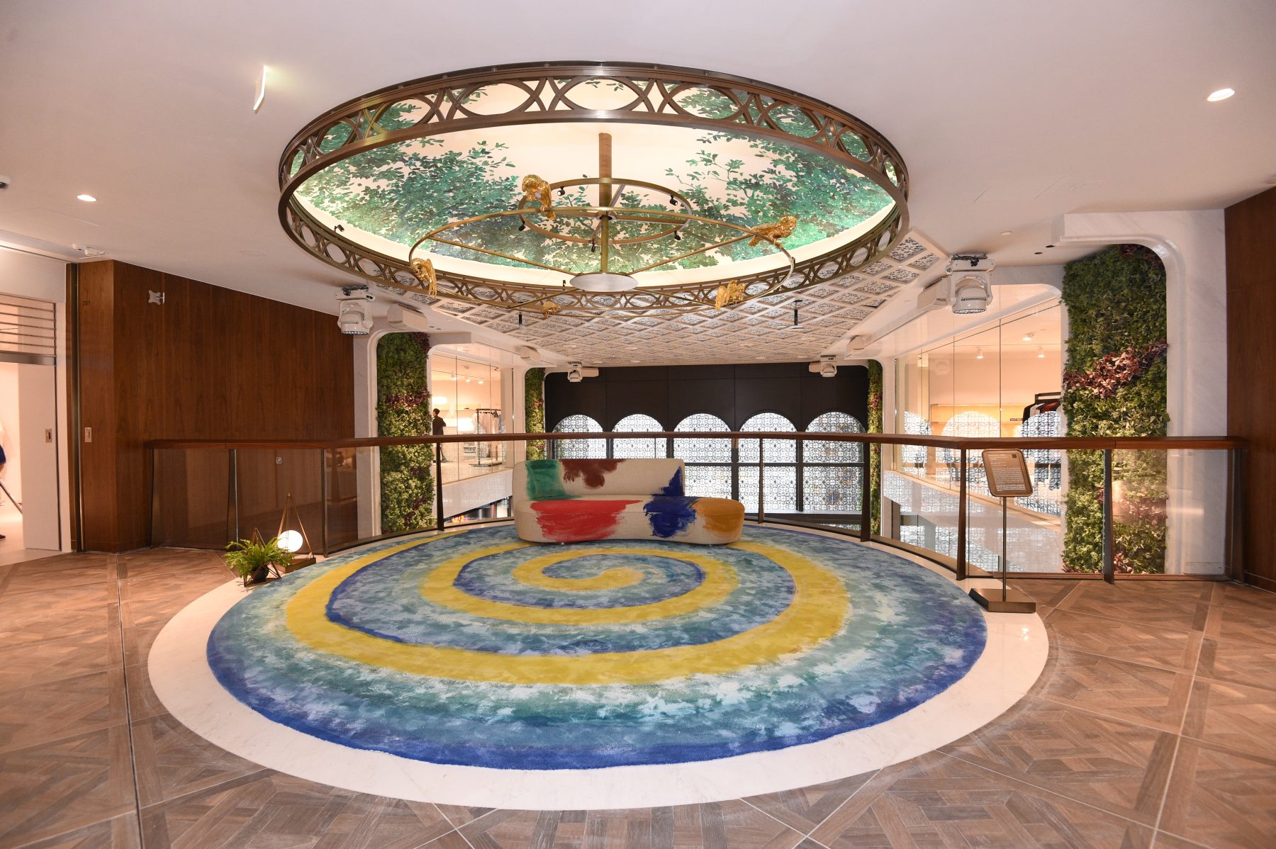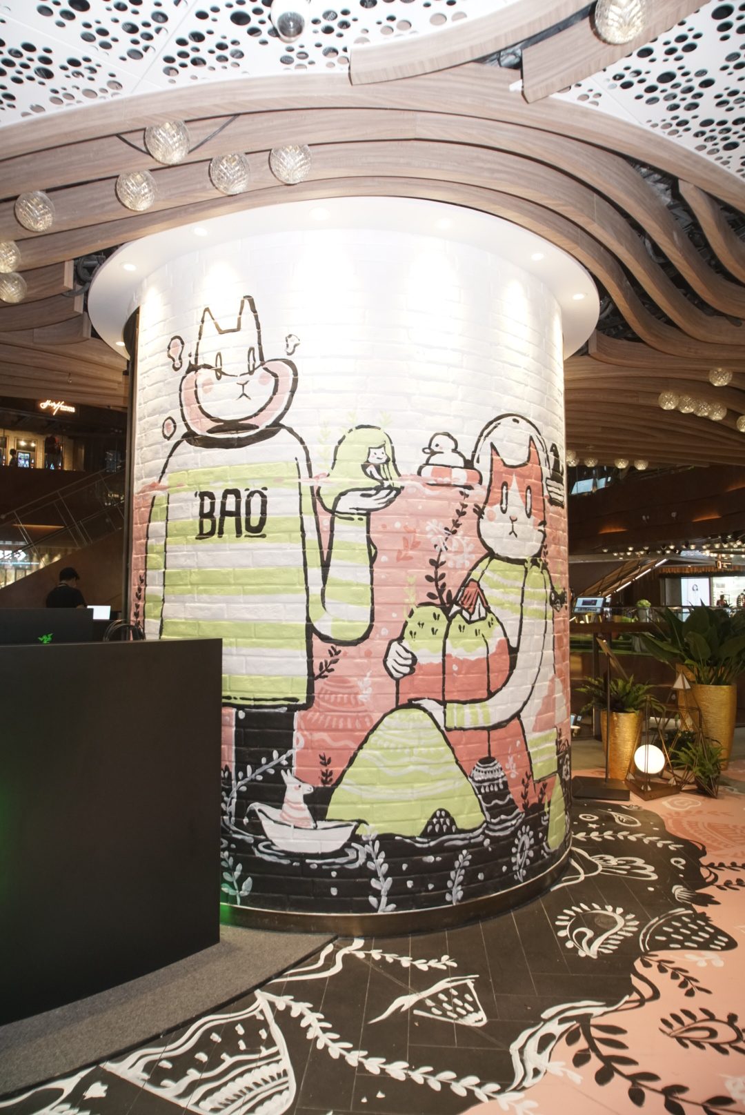 K11 MUSEA is also a trailblazing platform for artistic innovation, recently opening their very own art and cultural centre. Inside K11 MUSEA, Zhang Enli’s Parrots of Five Colours greets visitors with a floating garden, a hand-painted backdrop for five slowly circling golden birds, each one symbolising one of the five elements of Chinese philosophy. On the 3/F, themed ‘kiddult’, Kristopher Ho has realised a clockwork lion in thick graphic lines upon a graffiti column as well as its nearby floor space, while Bao Ho has created a fantastical world combining creatures and desserts in shades of pastel pink and green. Other playful touches include Samson Young’s intentionally oversized benches, evoking feelings of nostalgia from days as a toddler.