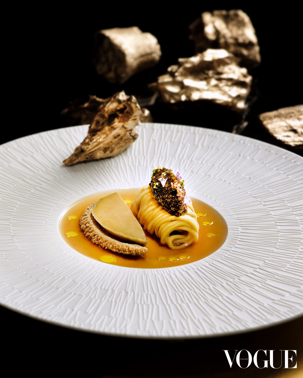VEA stands for Vicky Et Antonio (French for Vicky and Antonio), the restaurant name paying homage to Executive Chef Vicky Cheng and award-winning mixologist Antonio Lai. VEA merges the intricate techniques required in French fine dining with the potent spices and flavours of Chinese cuisine, in a warm and inviting atmosphere: an impressive counter and open kitchen space allow guests to watch Chef Vicky and his team in action, while a thoughtful and deliberate cocktail pairing is also offered, constructed by Antonio. The creativity of Chef Vicky is seemingly endless: the 6 or 8-course tasting menu sees one dish rotated out of the menu every two weeks, bringing unique flavour combinations for refined fusion cuisine that delights without coming across as sloppy or kitschy. One of the first courses on the esteemed tasting menu is abalone with hand pulled noodles and Kristal caviar, “The result is a rich velvety combination of smooth abalone, creamy chewy noodles, plump pearls of complex Kristal caviar, all cut with a sauce made from the natural juice of abalone and vinegar”