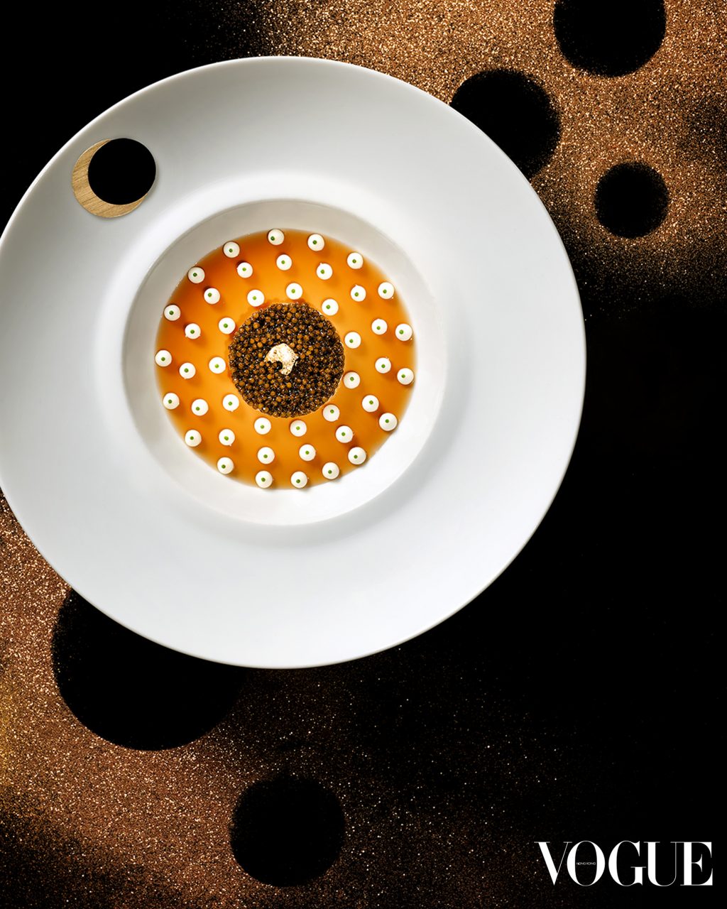 L’Atelier de Joël Robuchon epitomises opulence. With its signature sleek red and black décor, the three-michelin starred establishment offers an innovative take on French classics with thoughtful dishes that have been meticulously presented. Case in point: Le Caviar Imperial. Caviar was one of Joël Robuchon’s signature ingredients – in fact, the renowned chef created this dish at some point in the ’80s, and, spare a few minor updates, the dish has remained on the menu ever since. A perfect circle of marinated snow crab meat rests within a bed of lobster jelly, and is topped with a disc of osetra caviar and surrounded by dots of cauliflower cream. Executive Chef Adriano Cattaneo comments on the expertise required to create the dish, “It is really hard to prepare this dish, it requires a lot of concentration and attention to details, but it is so incredible when you know how to make it”. The umami of the lobster jelly perfectly complements the delicate potency of the caviar, while the lightness of the creamed cauliflower melds the ingredients together while softening the dish’s flavour profile. A truly exquisite dish, Robuchon has created a feast for both the eyes and the palate.