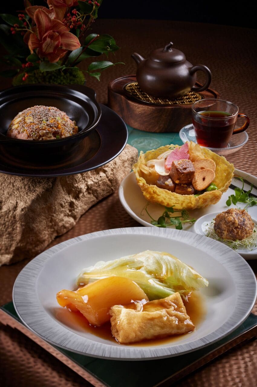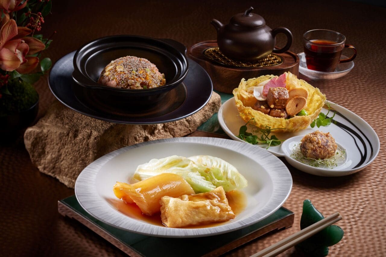 Welcome prosperity and good fortune into the upcoming year with a sharing-style Chinese New Year feast at Ming Pavilion. An abundant lo hei salad is the star of the show, consisting of pomelo, matsutake mushrooms, and live Japanese sea whelk and hamachi dressed with yuzu sauce. The rest of the set menu boasts enticing appetisers like Ming Pavilion’s signature five-spice bean curd pork rolls or drunken Scotland razor clams; nourishing soups the likes of Fujian-style Buddha Jumps Over the Wall or thick fish maw and king crab soup; Minnan-style dishes such as steamed local lobster with 15-year Shao Hsin Wine and tea-smoked crispy chicken with Fujian pickled vegetables; and comforting desserts of the not-too-sweet kind. Available January 26 through February 7, 2024, this shared set menu arrives with either a festive tea or wine pairing at an additional cost.