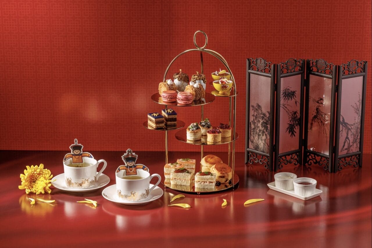 The Hong Kong Palace Museum and DALLOYAU for “A China-France Cultural Soirée” afternoon tea set. An enchanting array of French delicacies and premium Chinese teas intertwine in a cross-cultural celebration that honours the legacy of cultural exchange between Chinese and French royal courts of the 17th and 18th centuries. Delight in sweet classics such as mont blanc mille feuille, 70% Valrhona dark chocolate mousse resembling a porcelain vase, and scones served with homemade hawthorn jam, and sink your teeth into savoury bites like lobster black truffle and salmon sandwiches adorned in regal red and gold shades.