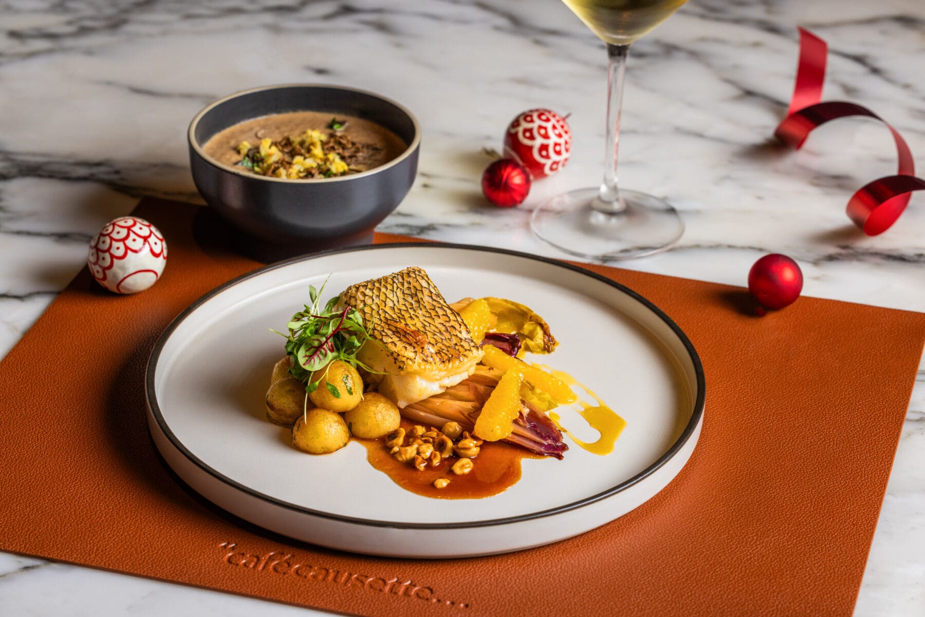 Rooted in nostalgia and French savoir-faire, La Terrace by Louise is Louise’s new bistro concept on the ground floor of their heritage-listed house in PMQ. For the festive season, indulge in delectable new dishes like the pumpkin agnolotti, a pillowy pumpkin-stuffed pasta accented with sweet amaretto and black truffle. Meanwhile, clementine and smoked cream accompany a bed of langoustine all while the scallop crudo swims in a pool of bigarade vinaigrette, resting underneath the sails of dainty lemon slices. For dessert, the passion fruit crème brûlée is silky and light, and the clementine Eton mess is complete with creme fraiche and meringue.