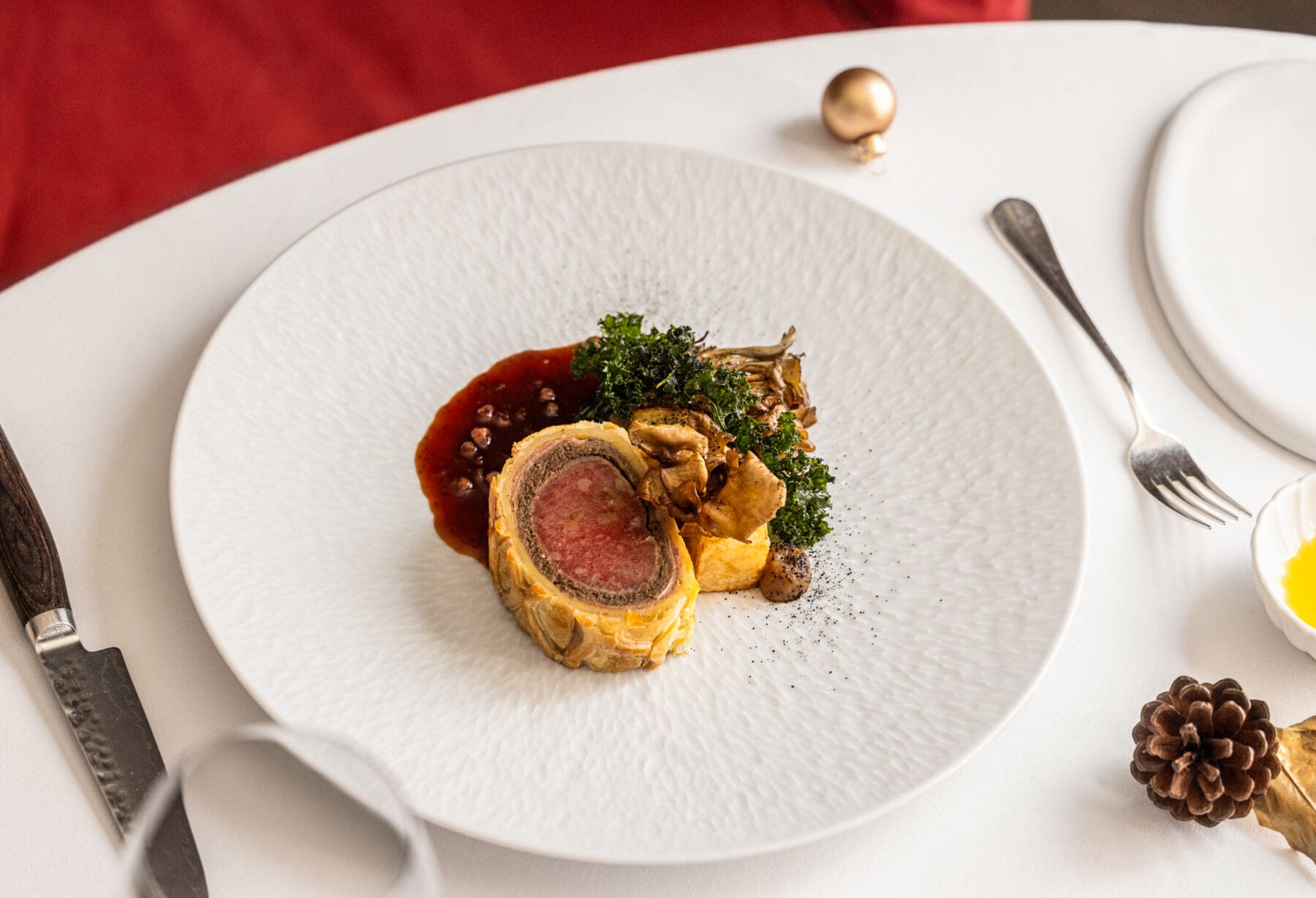Who better to trust will bring the authentic flavours of Santa’s hometown than Arbor’s Finnish chef-owner, Eric Räty? His festive menu showcases a masterful blend of Nordic and Japanese sensibilities, incorporating seasonal wintertime flavours sure to resonate with holiday diners. A bowl of velvety chestnut soup is enriched with winter truffle, signature pigeon arrives with a touch of Christmas-red lingonberries and braised red cabbage, and chocolate gingerbread is a delightful complement to a glass of berry mulled wine.