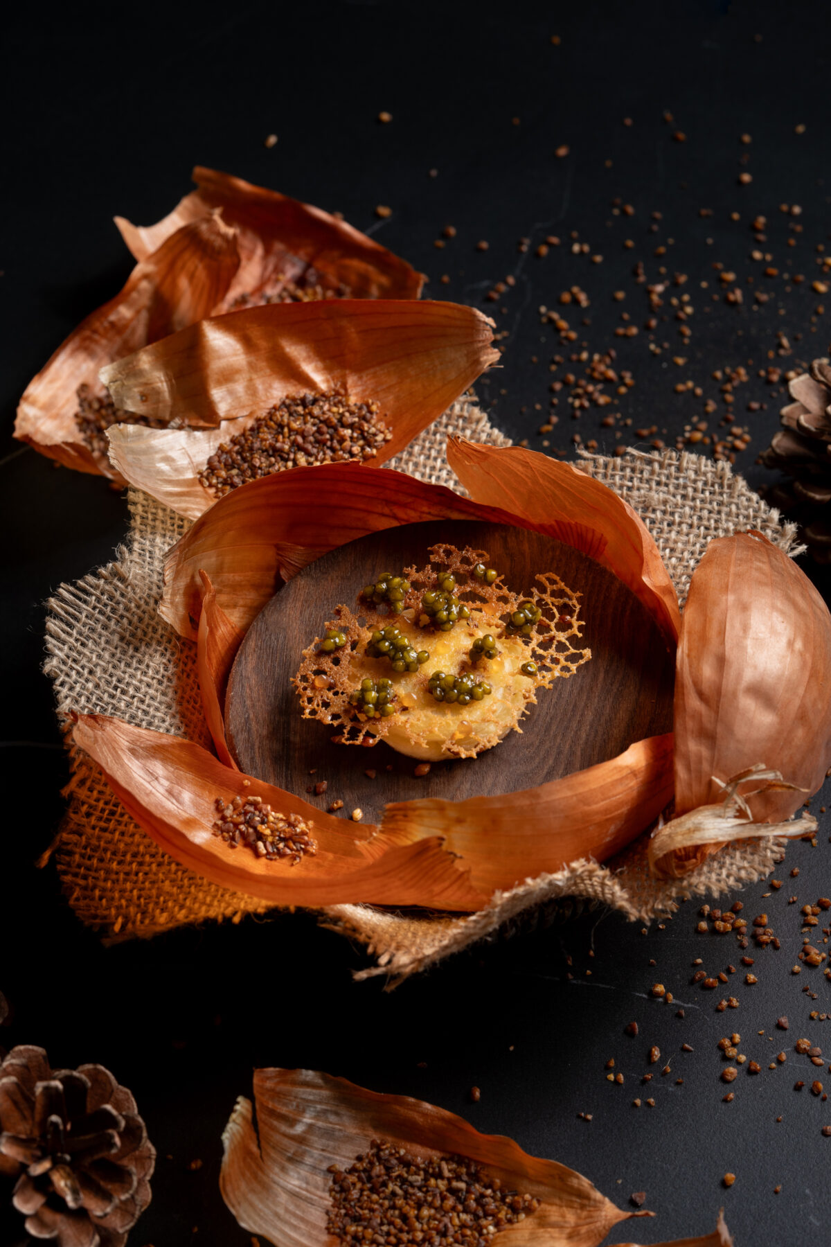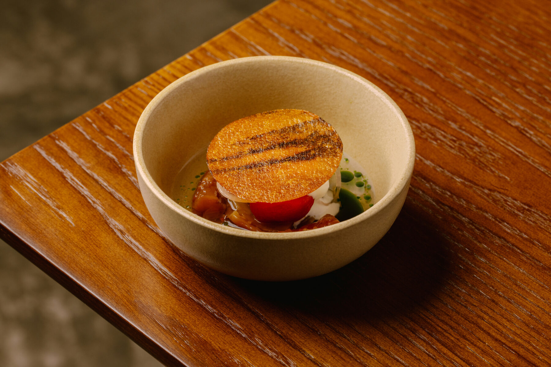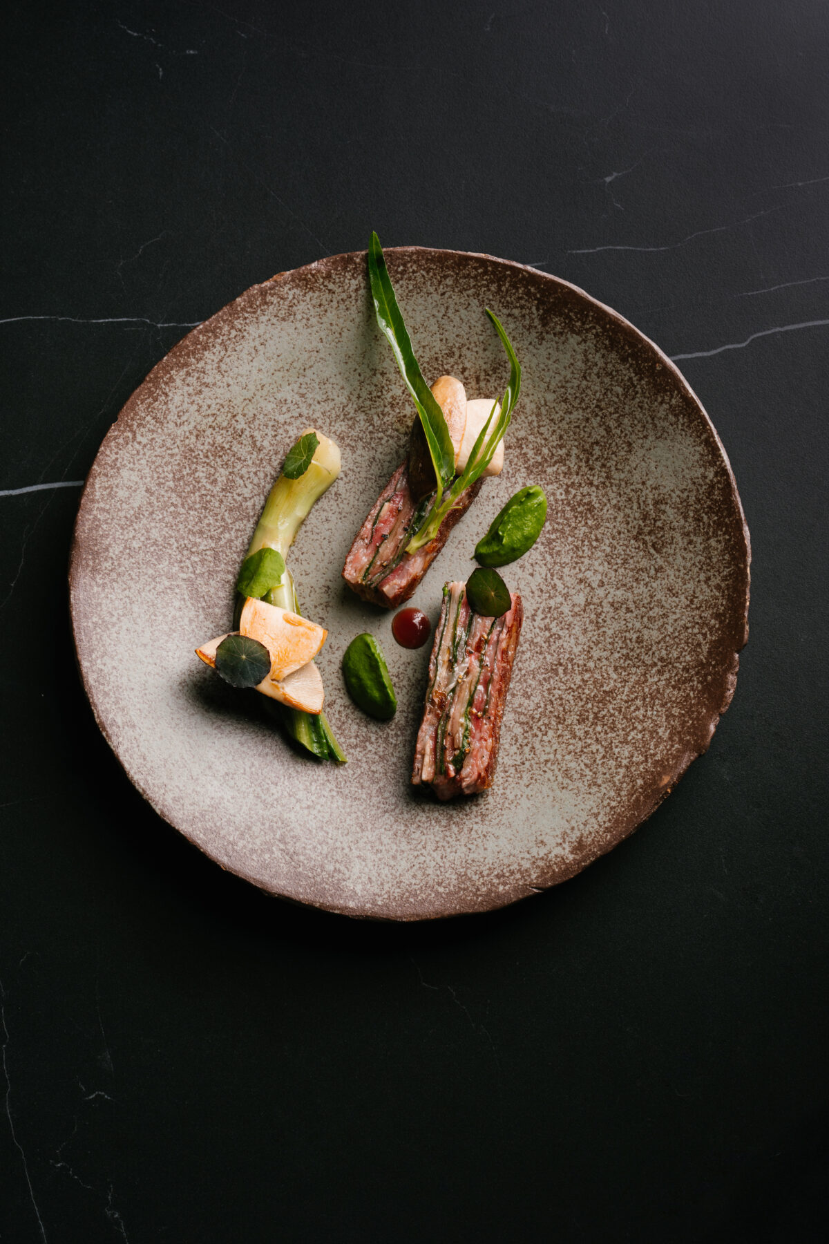 Executive Chef Joris has dreamed up 10 and 14-course dinner menus that brim with the multifaceted flavours of the season. Beetroot gets a spot in the limelight with a delicate dish that pairs the intensely earthy vegetable with beetroot powder-dusted croutons, velvety beetroot puree with fig leaf oil, and smoked bamboo shoot foam for added depth. A4 Wagyu Striploin is elevated through a layered arrangement that mimics the elegant structure of a mille-feuille. Strips of blaze mushroom and tung choi are nestled between bands of perfectly medium rare meat, whilst charcoal-finished celtuce gives a complementary crunch and potato crème fraîche brings a creamy finish.
