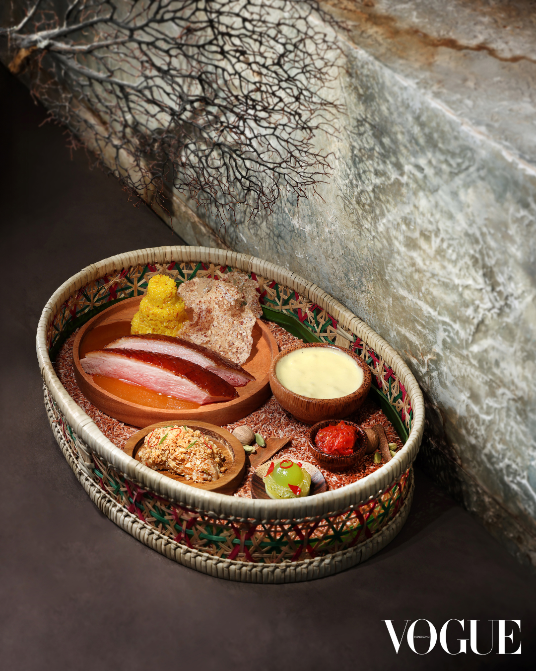 Now, the 29-year-old Canadian-Indonesian chef is not only cooking up a storm in the Belon kitchen, but will be representing Asia at the S.Pellegrino Young Chef Academy Award Grand Finale in Milan. His competition dish is a celebration of his Indonesian heritage. Scaled down from its usual large sharing portion, Ferguson’s rendition of nasi tumpeng incorporates a portion of roasted duck breast as a nod to Hong Kong cuisine. Produced completely from scratch, the other elements of the dish adhere closely to the original whilst showcasing Ferguson’s innovative flair: a charming turmeric coconut rice tower, red rice crackers, satay padang made with duck leg and bones, fresh sambal, calamansi-pickled cucumbers with cucumber jelly, and sayur lodeh reinvented with a spiced butter sabayon on top.
